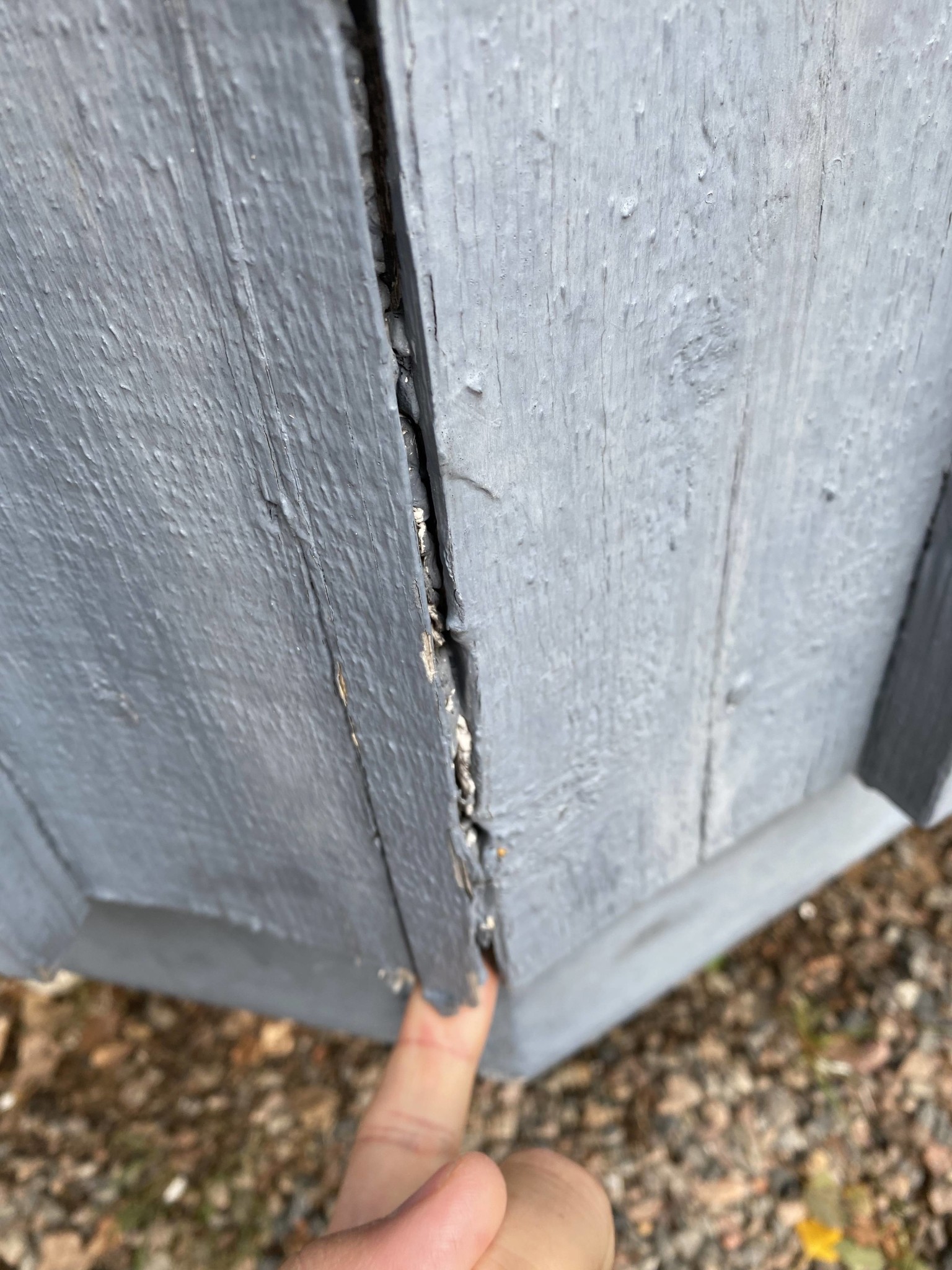Jag är på g att måla huset och det är en glipa i burspråket. Vänster planka känns lite mjuk undertill. Det jobbiga är det är så mycket att riva ner så det tar emot. Men det är väl bara att göra?