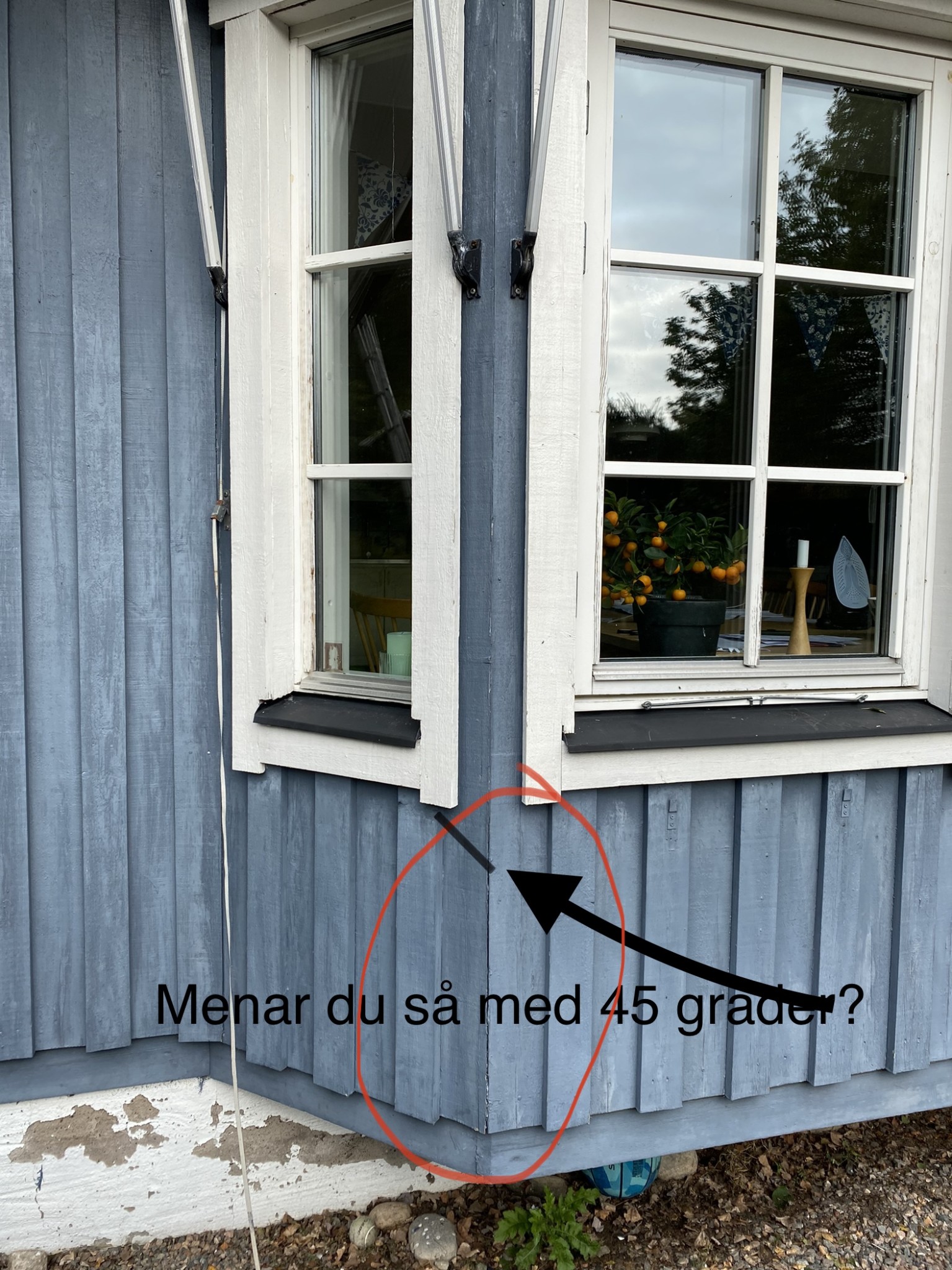 Jo men jag måste ju bort med två markiser, ta ner fönsterfoder och plank innan jag kommer fram till ”plankan” och sen måste jag ju skära nån vinkel i träet så det ligger tätt på.