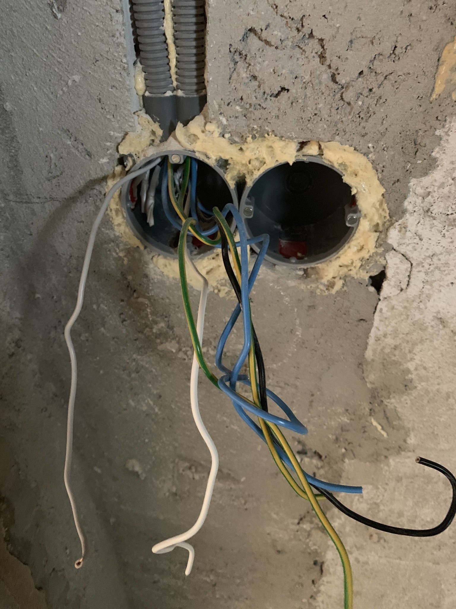 Det som kommer in i rummet är , en ledare /svart,blå,gulgrön som dom andra ska kopplas på, så kag funderar om jag ska koppla tvättmaskinens på 2 ledaren o med chans senare om torktumlaren skaffas o sedan koppla. En lampa i taket på en ledaren o kanske dra vidare på den till eventuellt spegel med lampor o ström i...alltså dra 2 ledaren till ett dubbel uttag eller bara ett singel uttag o sedan swicha stickkontakten mellan tork o tvättmaskin om det nu ska användas...vad tycker ni? Bilder...-