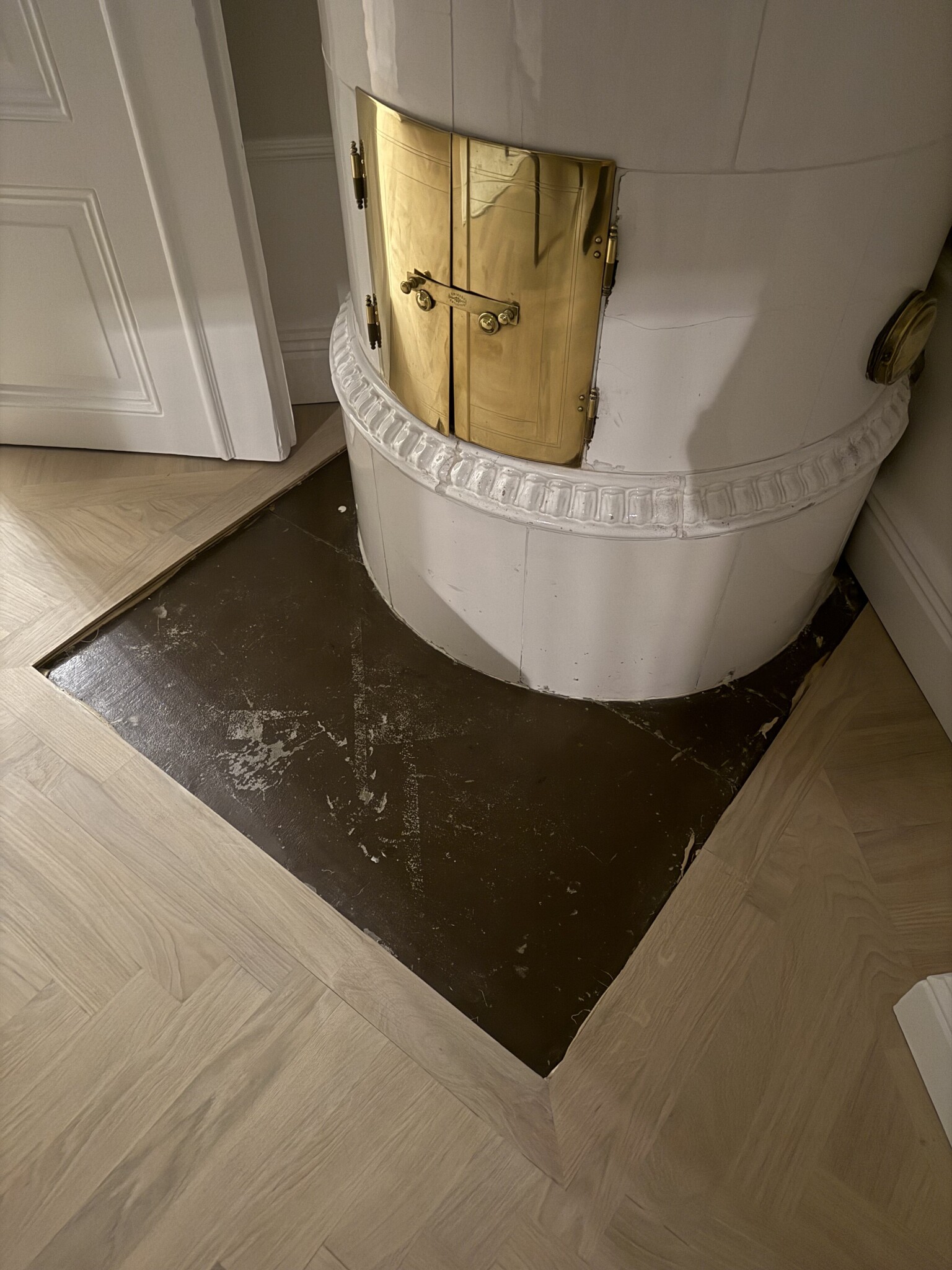 Om ugnen har mittband troligen 34“ i foten. Bilden visar inte.