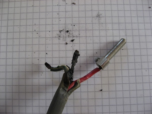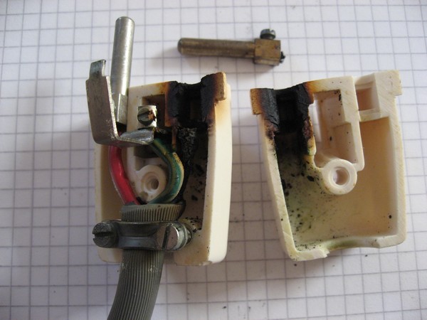 Tycker det ser ut som om varmgången skett i kontaktövergången mellan ledaren och kontaktstiftet i handonet. Vad är det för apparat som matas av sladden. Eller är det den här skarven