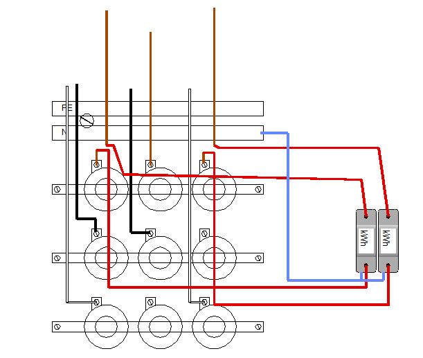 Det är bara att sätta en pytteliten 2-modulers kapsling bredvid centralen med två st enmoduls elmätare.