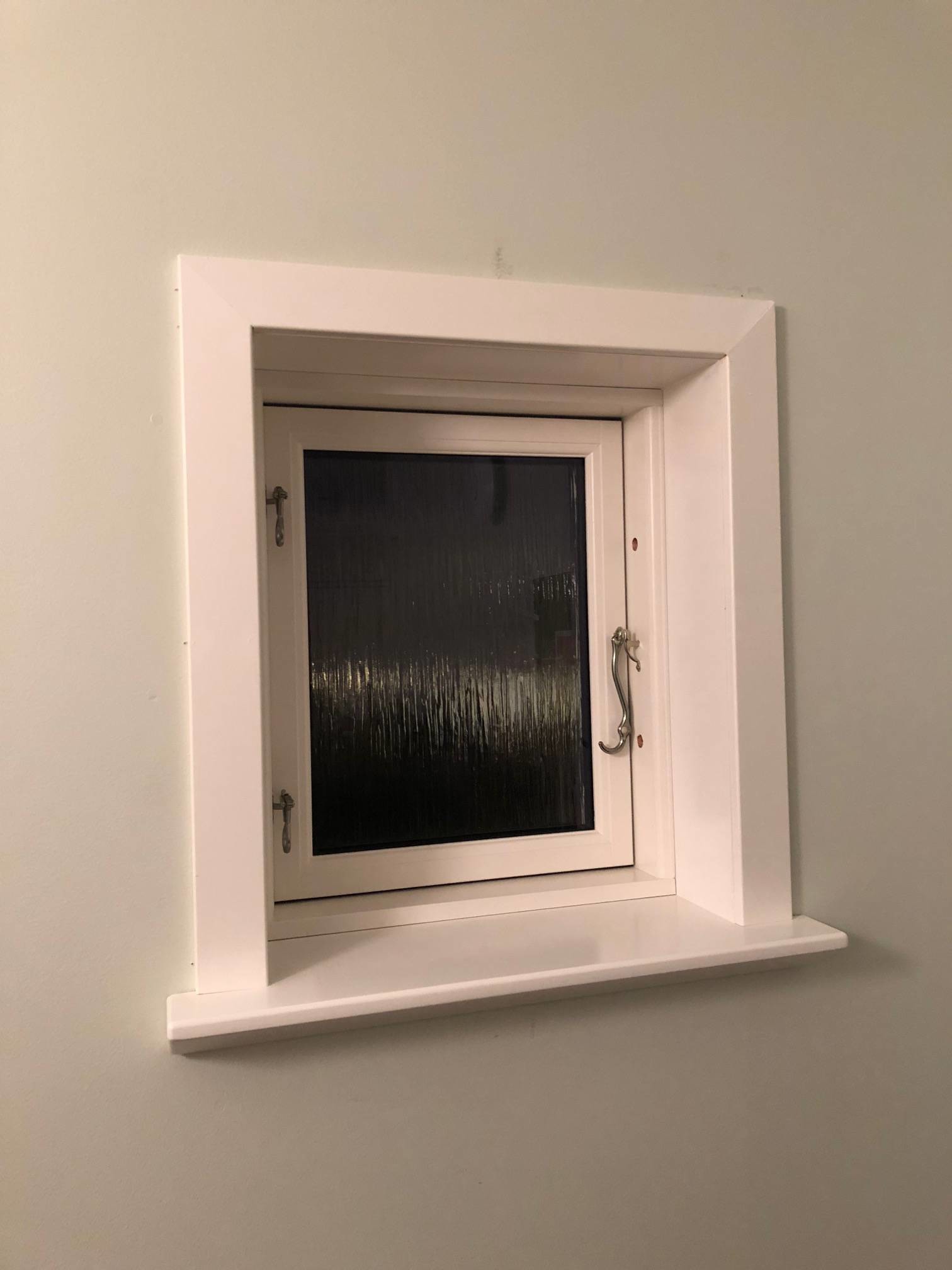 Mitt problem är att salningsspåret sitter rätt långt in mot fönstrets mitt och att avståndet från det nedre salningsspårets övre kant ner till var väggen börjar varierar från 35mm till 60mm. De tjockaste fönsterbänkarna de har är 38mm vilket kommer lämna en glipa under en del av fönsterbänkarna. Jag har mailat Enmans för att se om de kan göra tjockare fönsterbänkar men även om de kan det är jag rädd för att det kommer se klumpigt ut.