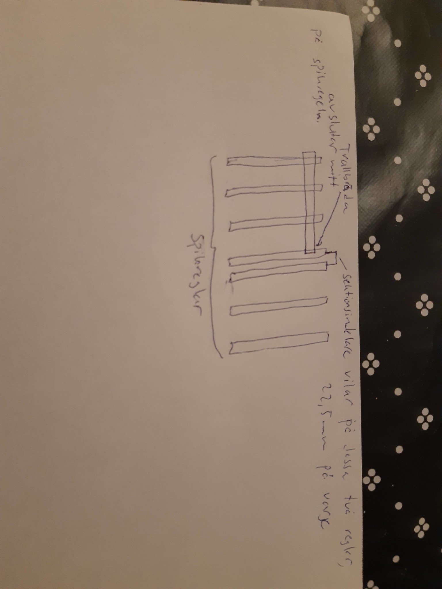 Som du ser på skissen avslutar längsgående trall mitt på en av dubbelreglarna. Jag ska alltså kapa trallen längs med hela längden av och mitt på dubbelreglarna.