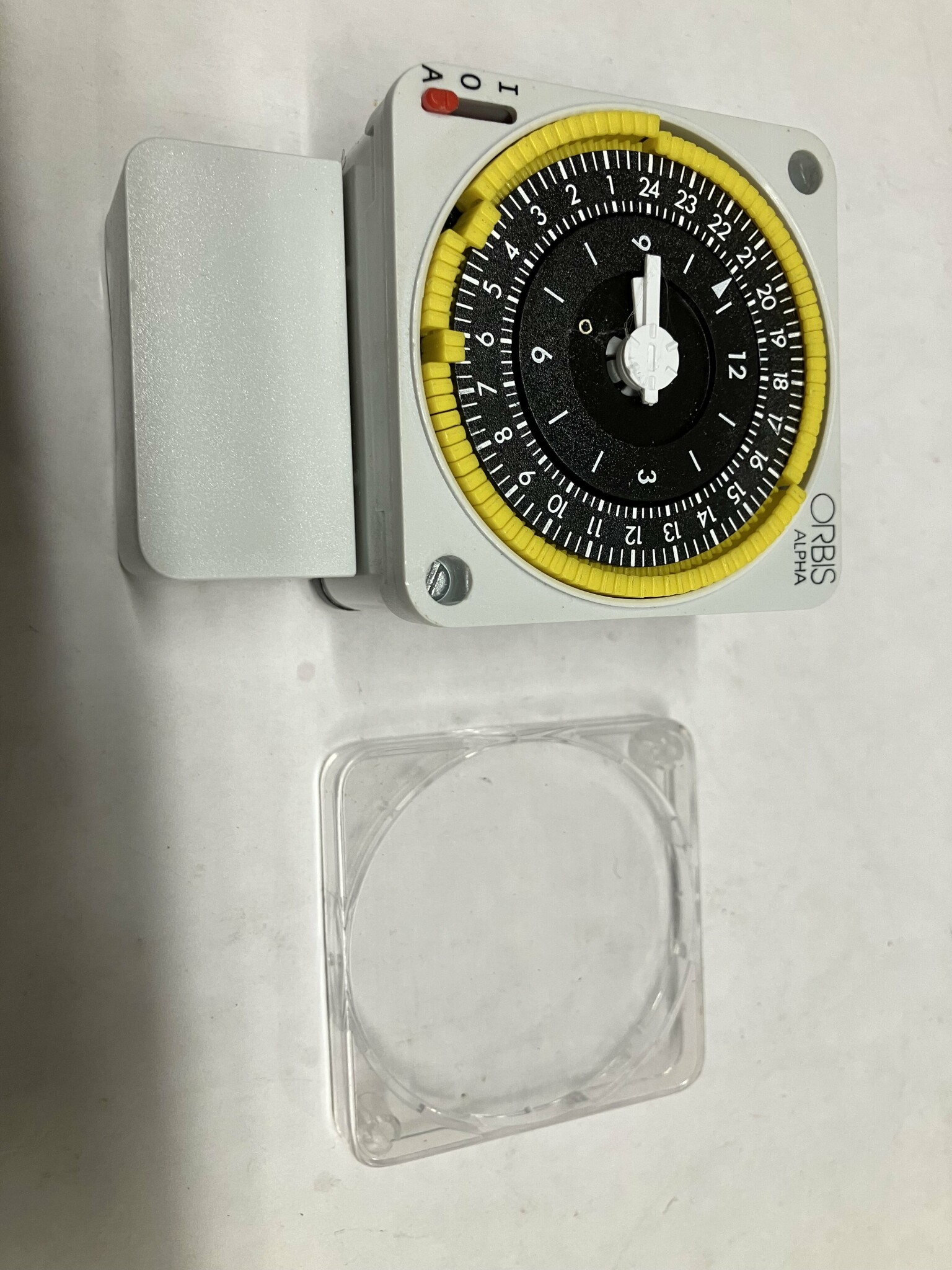 24 timmars ur. Monteras på plan yta eller DIN-skena. Orbis Alpha är ett kvalitetsmärke och dessa klockor kostar bra över 1000 kr.