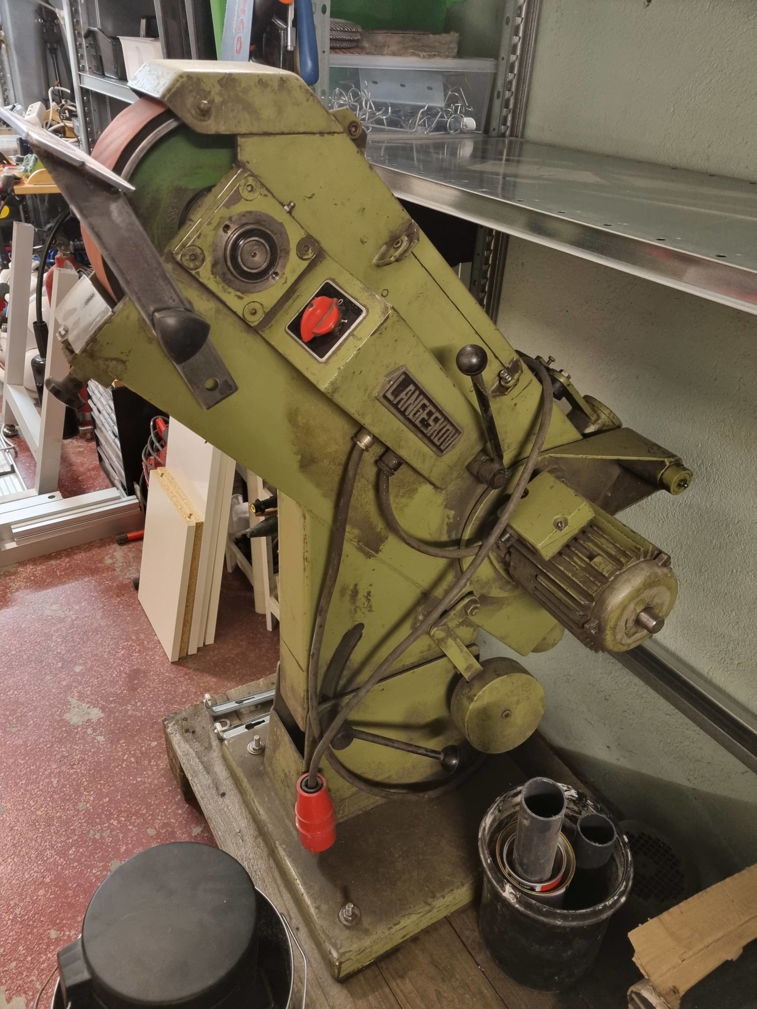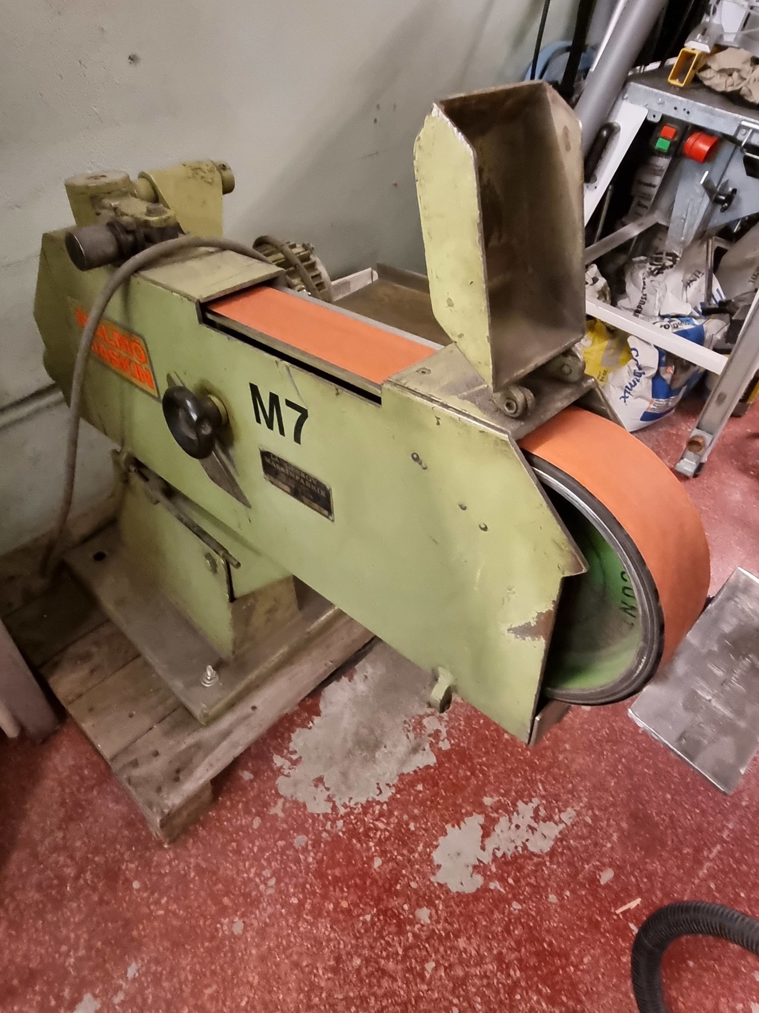 Slipen går på 3-fas och jag slänger med en drös med nya slipband ( ca 10 styck med varierande grit) både nya och bättre begagnade. 4000kr önskar jag för denna