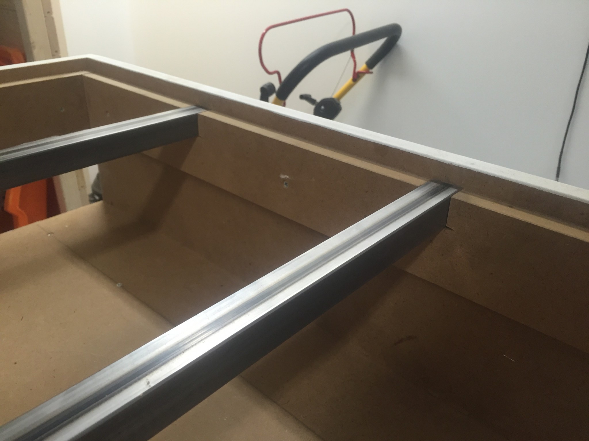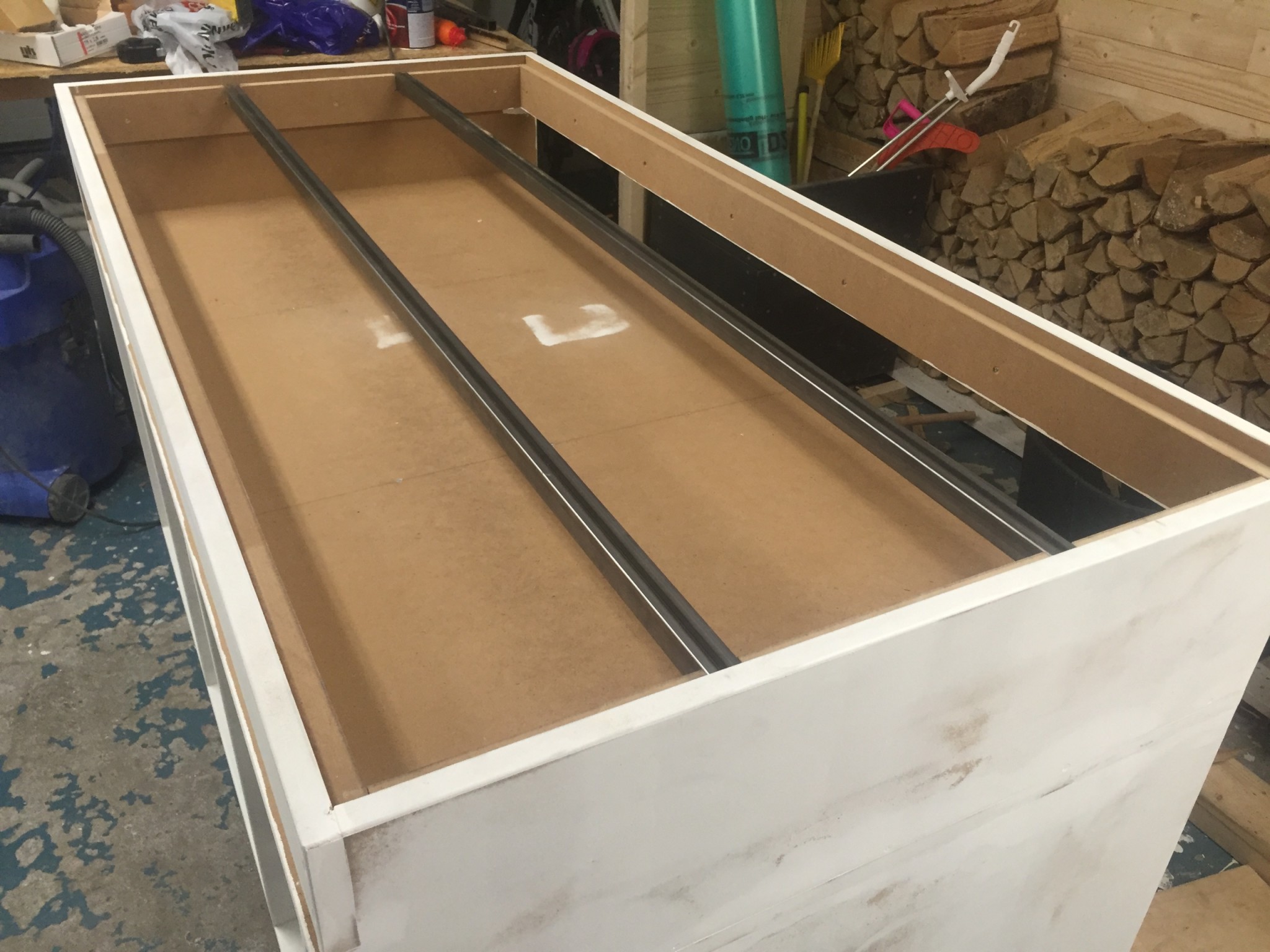 Har även funderat på hur jag ska få toppskivan stabil så att den inte sjunker på mitten. Mina två alternativ som jag väljer mellan just nu är antingen MDF-stöd på tvären över mellanväggarna.