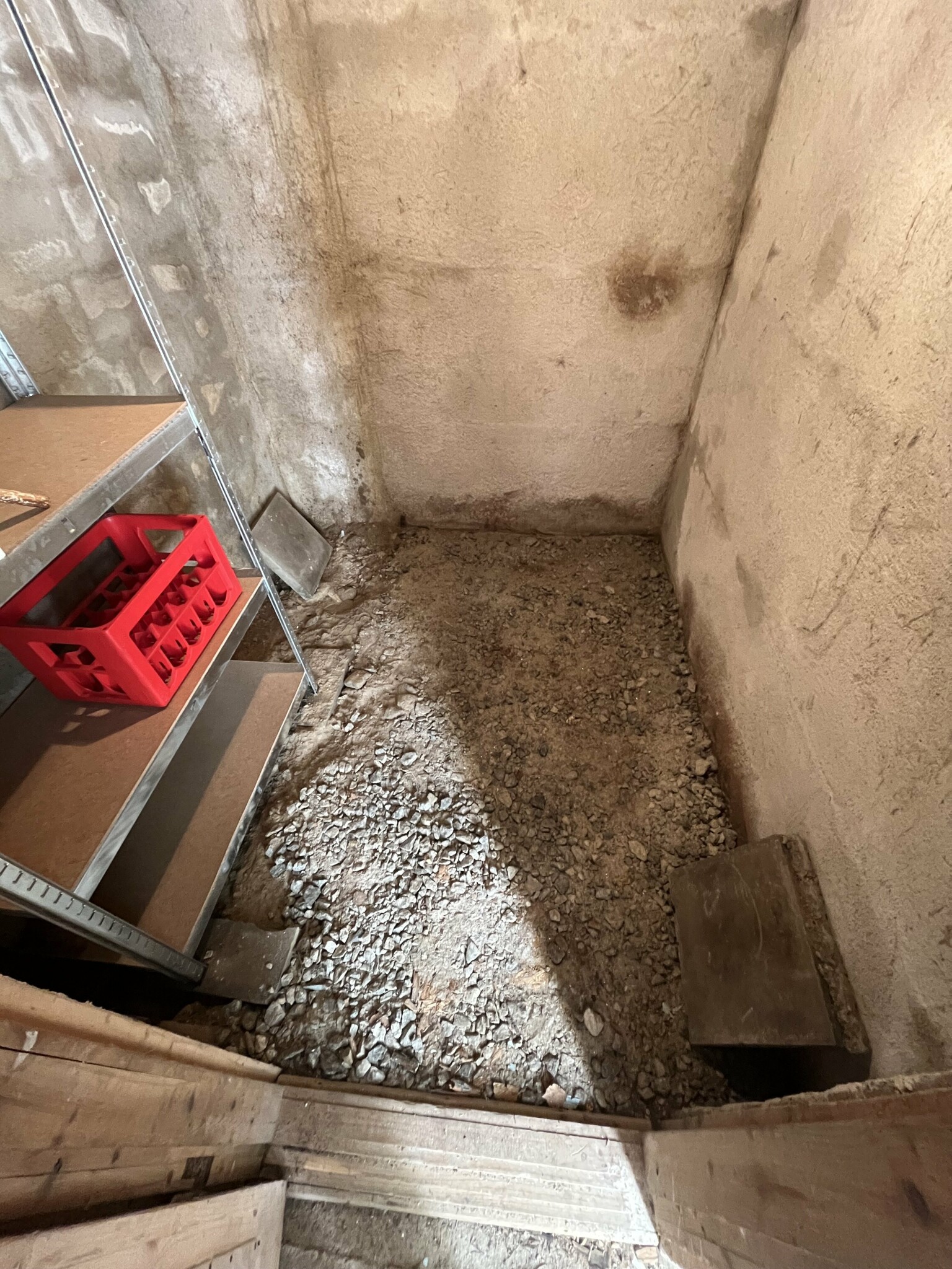 Blindbotten i förmaket, torra å fräscha brädor till skillnad mot de i matkällaren