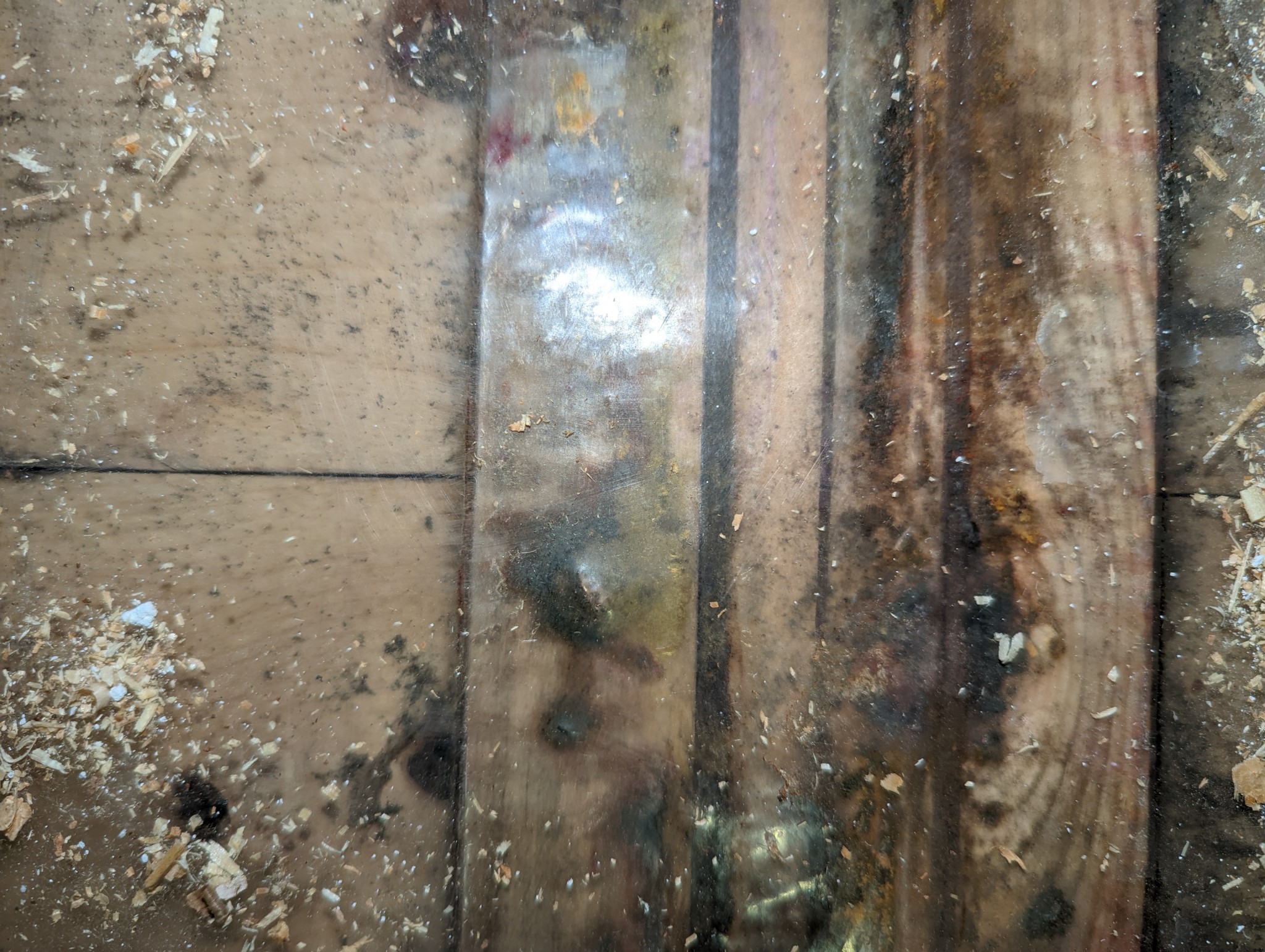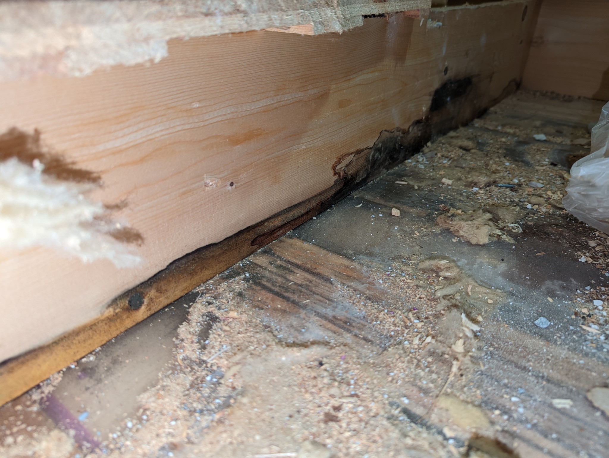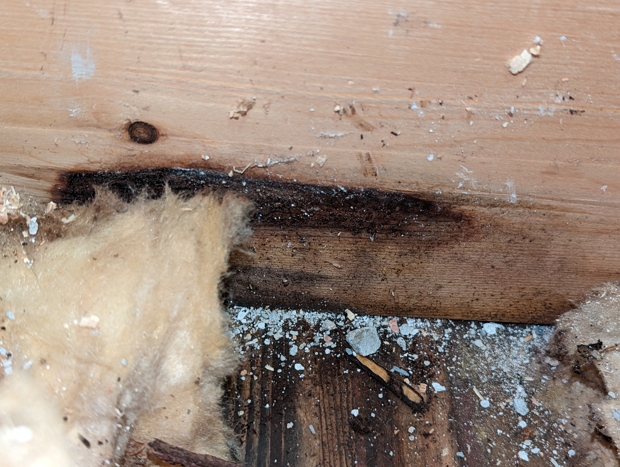 Dock är det vissa missfärgningar på bjälklag och vi virket som sitter i källartaket. Isoleringen har dock varit i bra skick