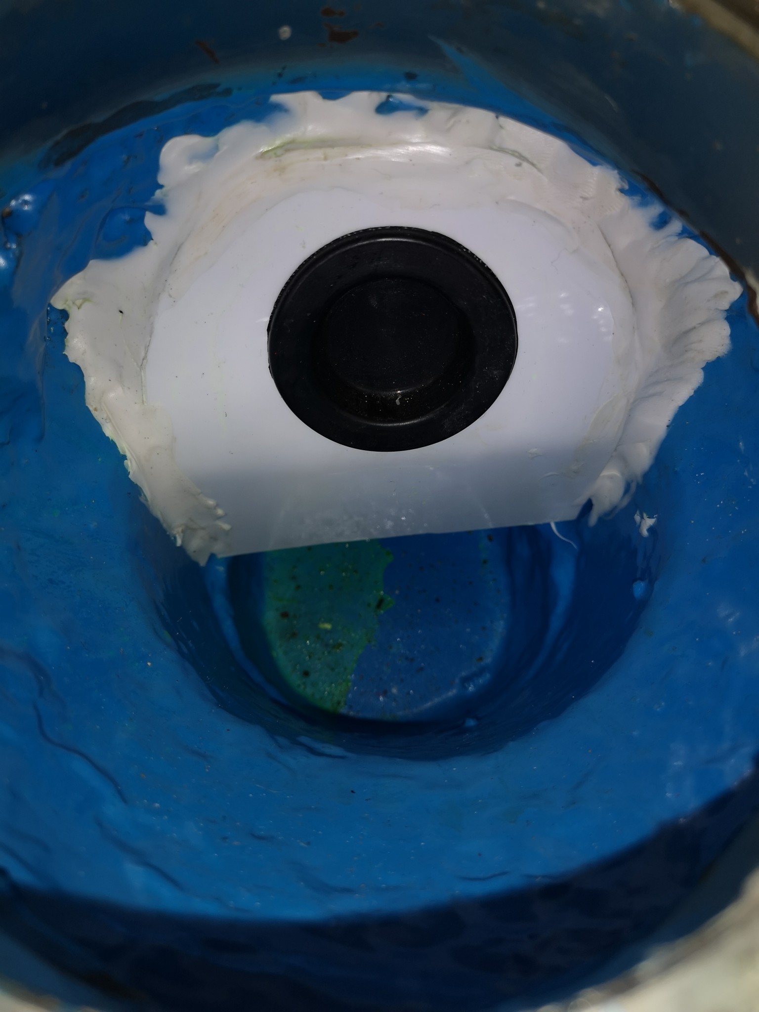 Man ska inte relina plast sådär utan skulle ha slutat där gjutjärnet slutade har andra som sysslar med relining upplyst mig om.
