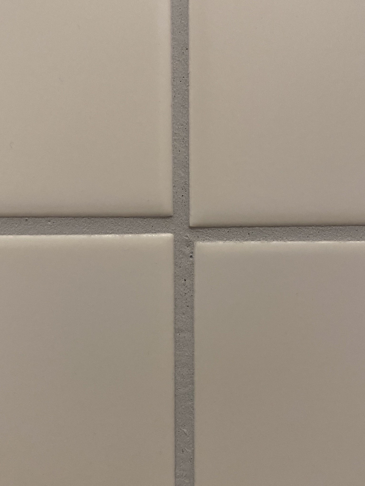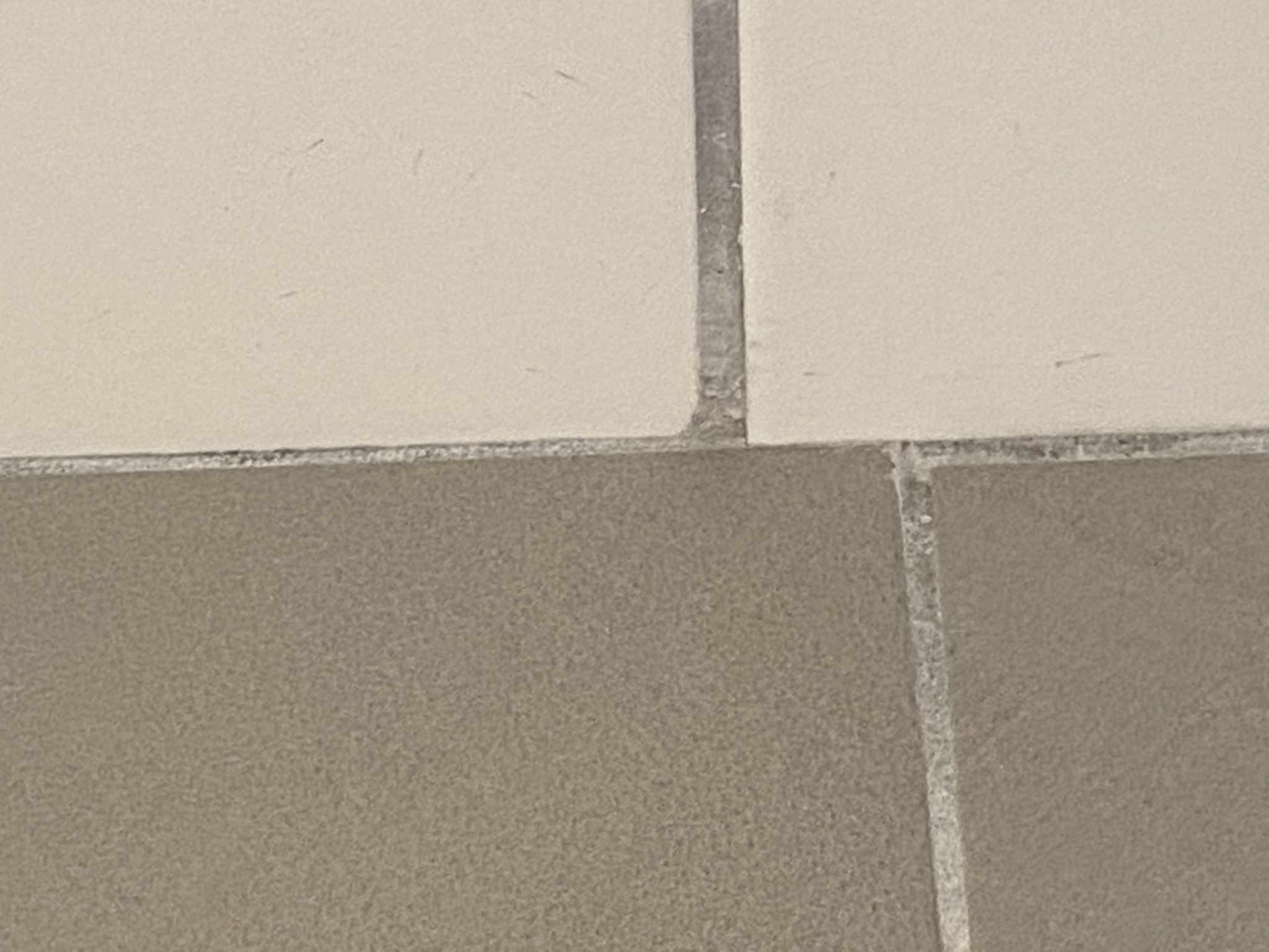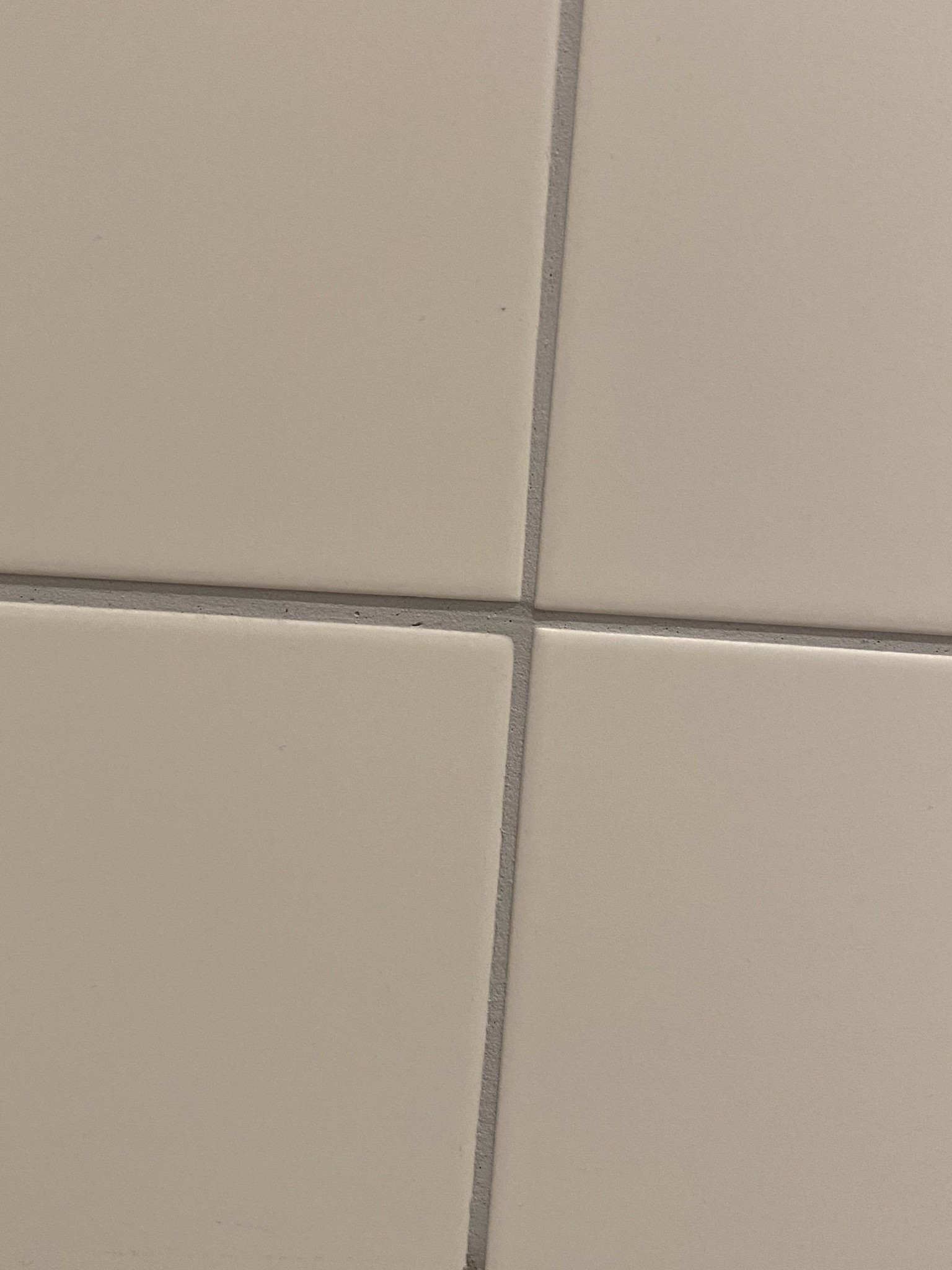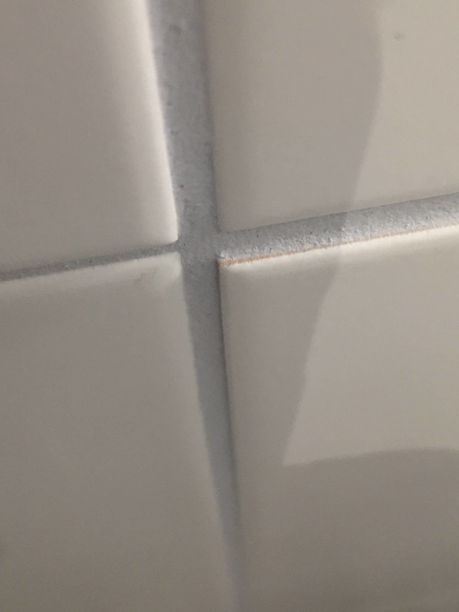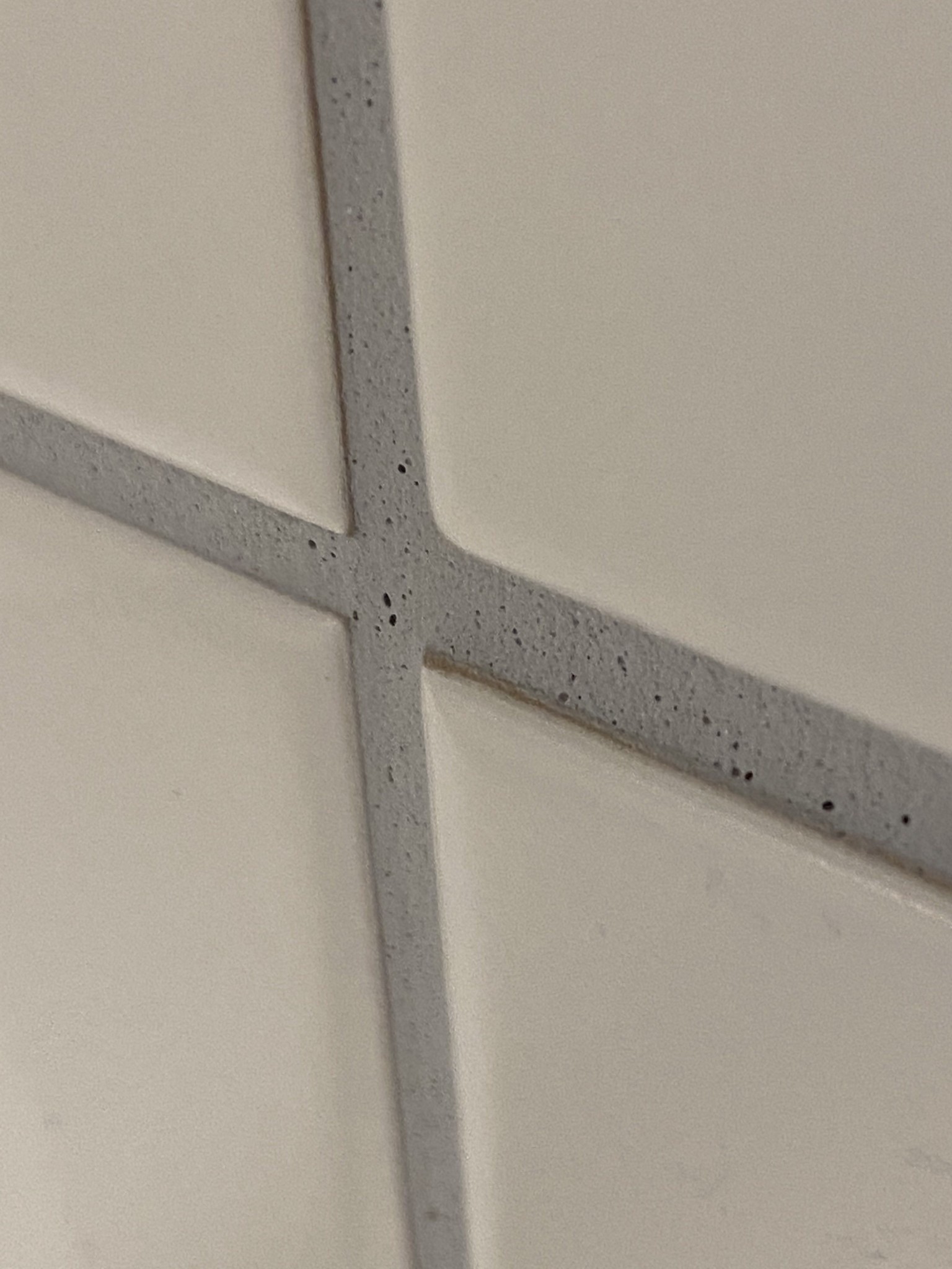Stort fogsprång både på golvet och väggarna, ojämn fogbredd, missfärgade fogar, porer, hål och smuts i fogen osv. Bilderna visar några exempel på detta.