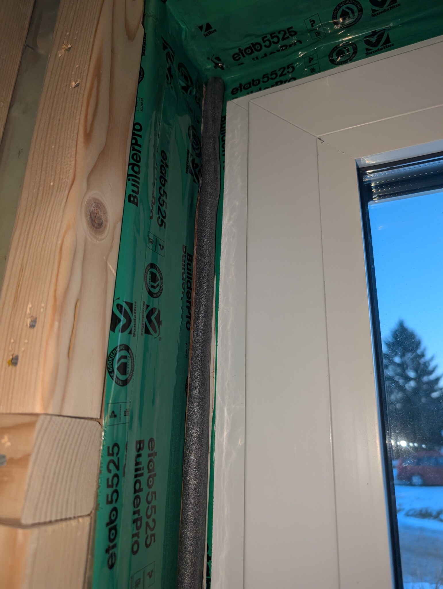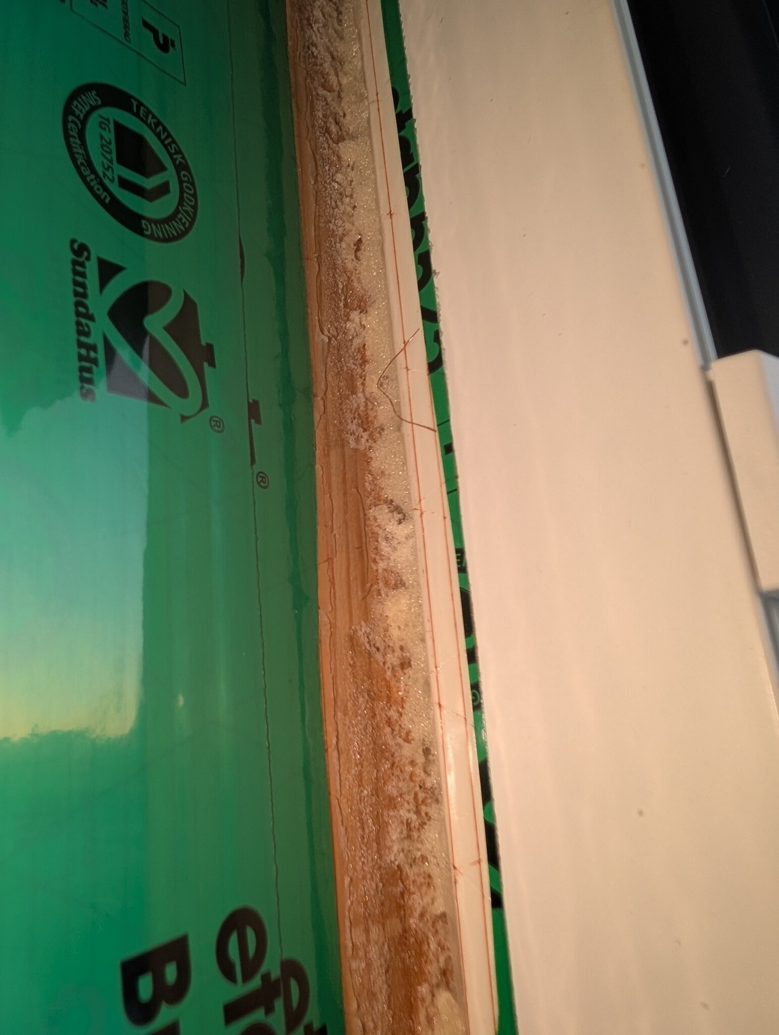 Nu funderar jag om jag ska trycka in / skära bort lite fogskum runt fönstrena samt trycka in expanderande fönsterdrev alt. bottningslist