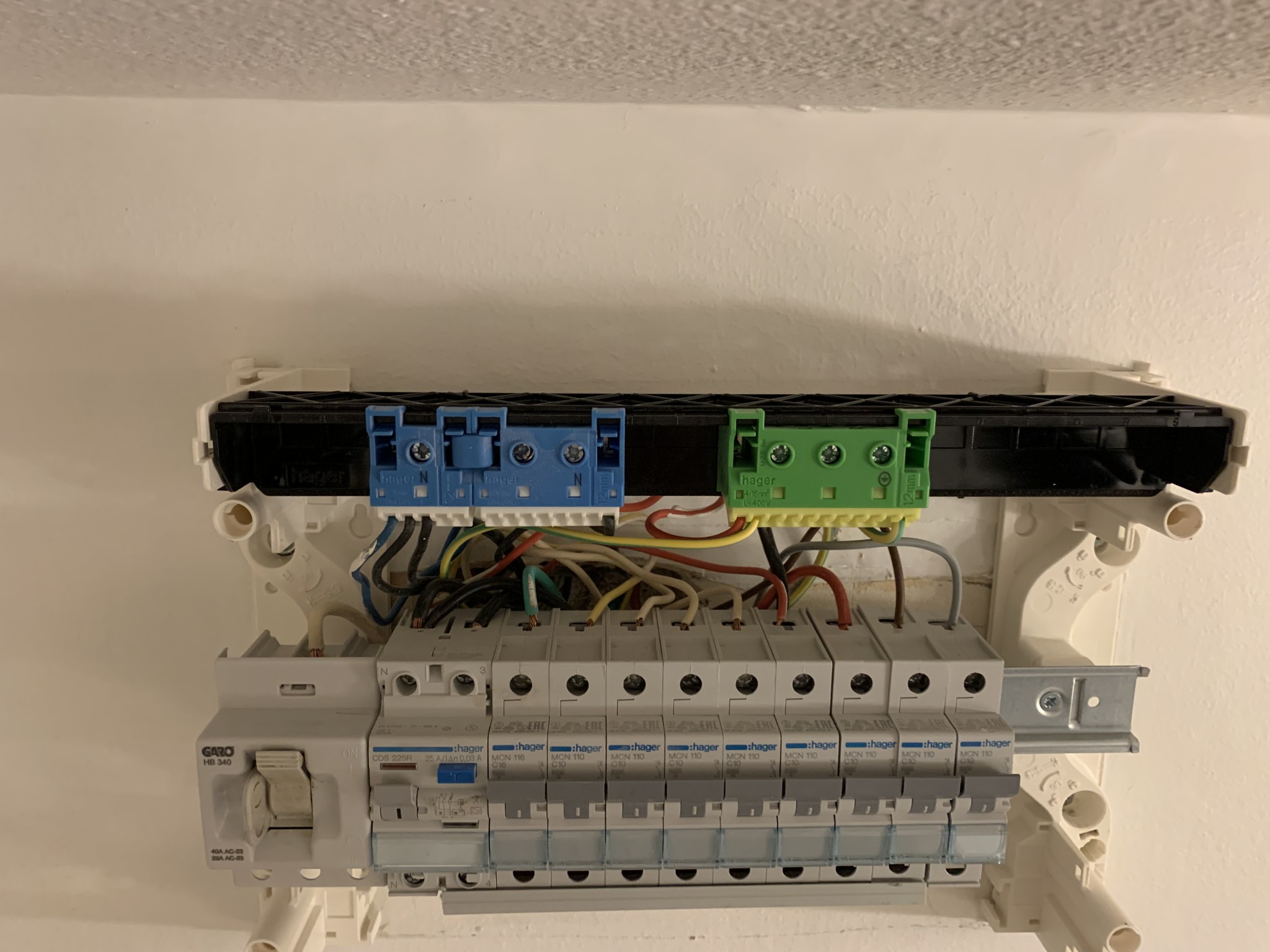 Det är också dumt kopplat med PEN på inkommande plint på JFBn. PEN borde gå till gröngul plint och därifrån tar man ut en nolla till JFB (därmed borde också gröngul och blå byta plats).