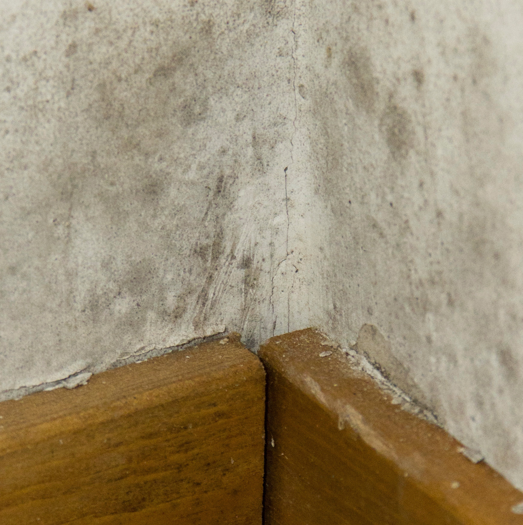 Han kom fram till att det är ett begynnande svartmögelangrepp, som uppstått pga av att luften kondenserat i de kalla hörnen och i nederkant av väggen.
