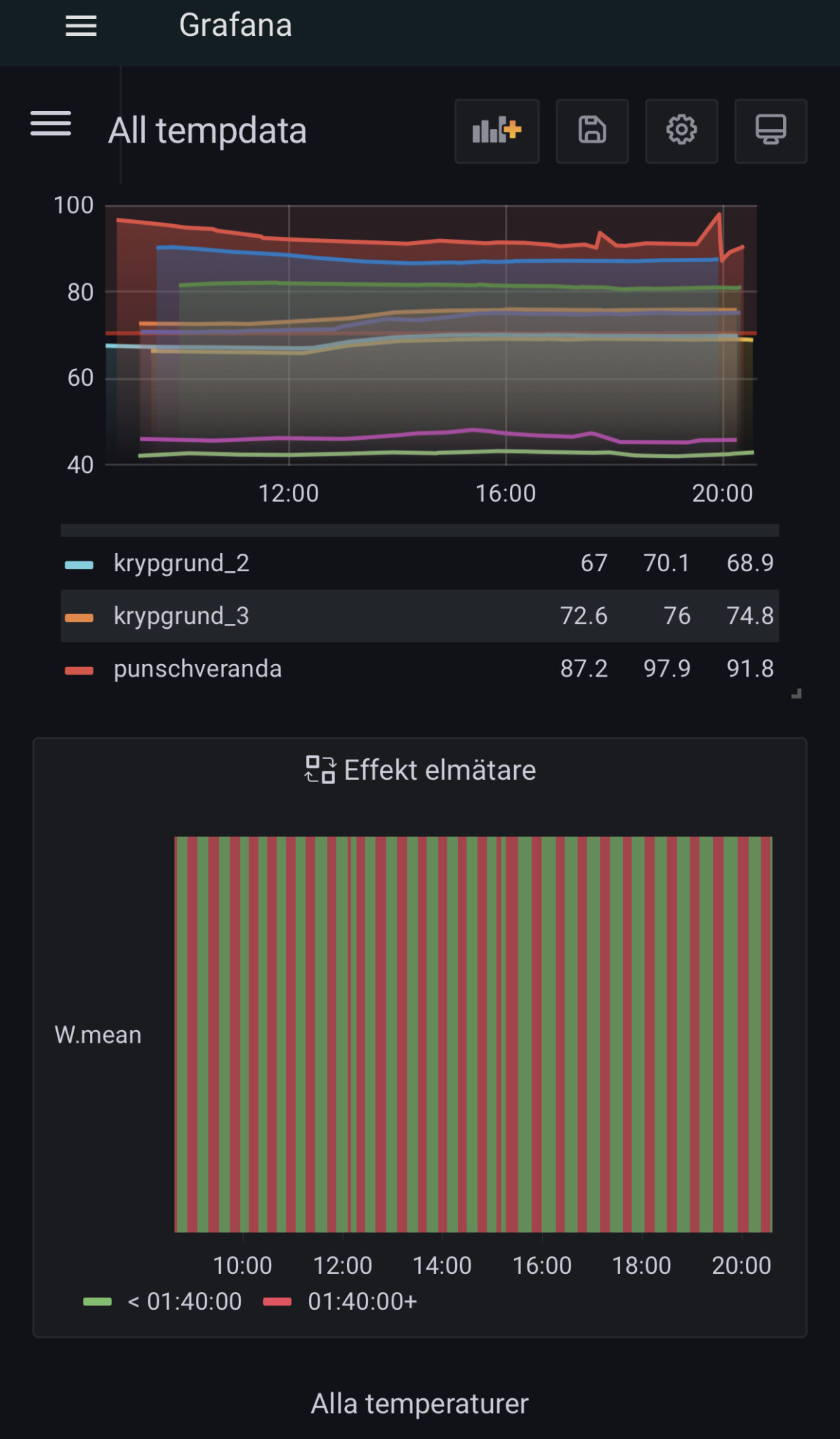 Jag kör elpatron dygnet runt, men jag försöker tämja och trimma in pannan och har därför fixat så att jag kan se minut för minut om jag vill, hur ofta och hur länge patronen kör.