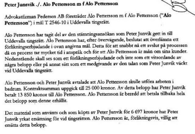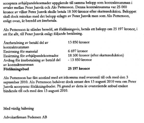 Jag scannade det erbjudande som Alo via sin jurist skickat till mig, bifogar det här och hoppas att det blev läsbart då jag delade upp det i tre bilder, allt är med utom underskrifter, adresser et c...