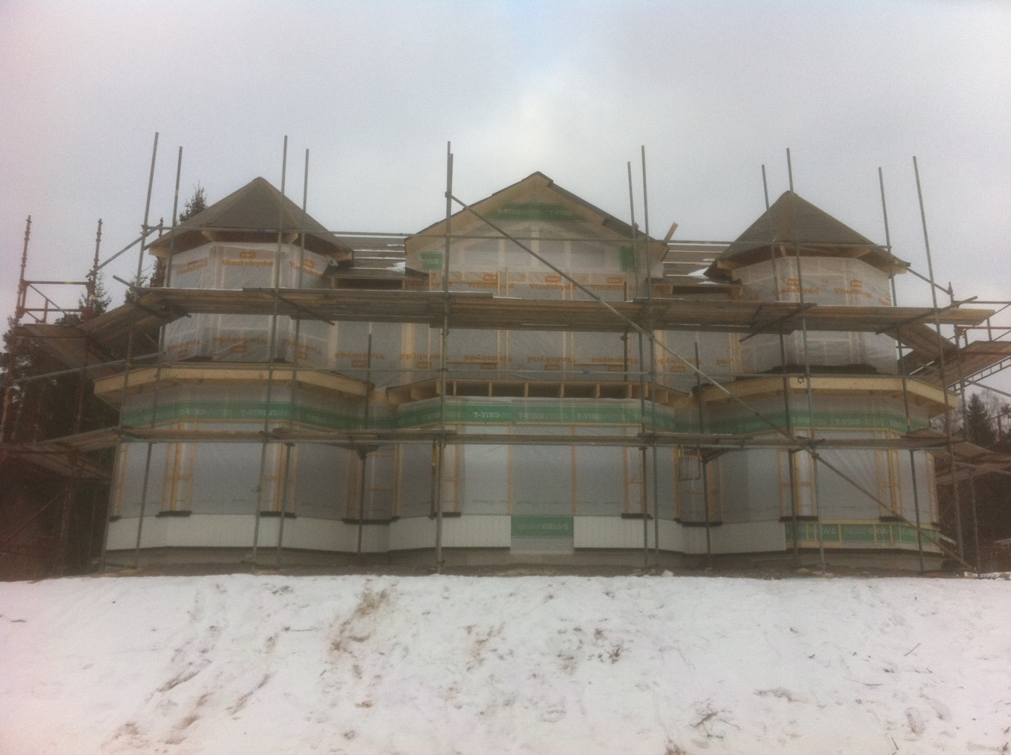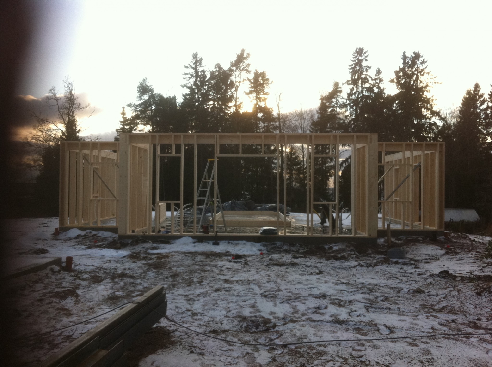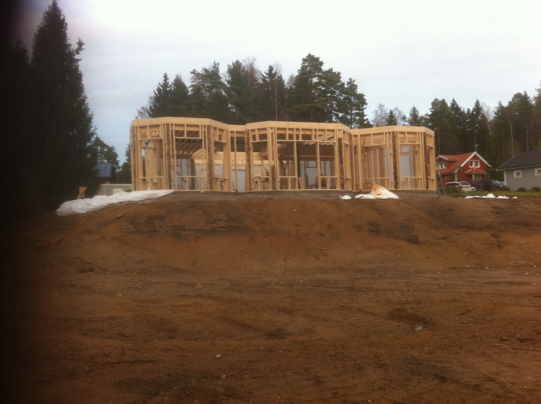 Grund och mark arbetena tog jag in en lokal firma till(väldigt nöjd).Grunden gjöts i oktober och jag kunde börja resa stommen i december.Stommen var för övrigt det absolut roligaste med hus bygget.