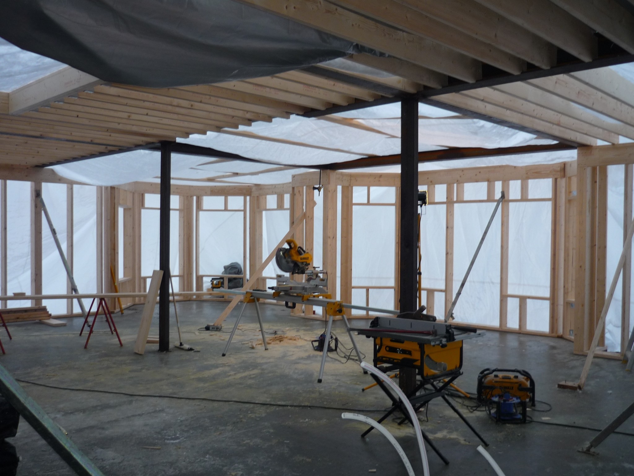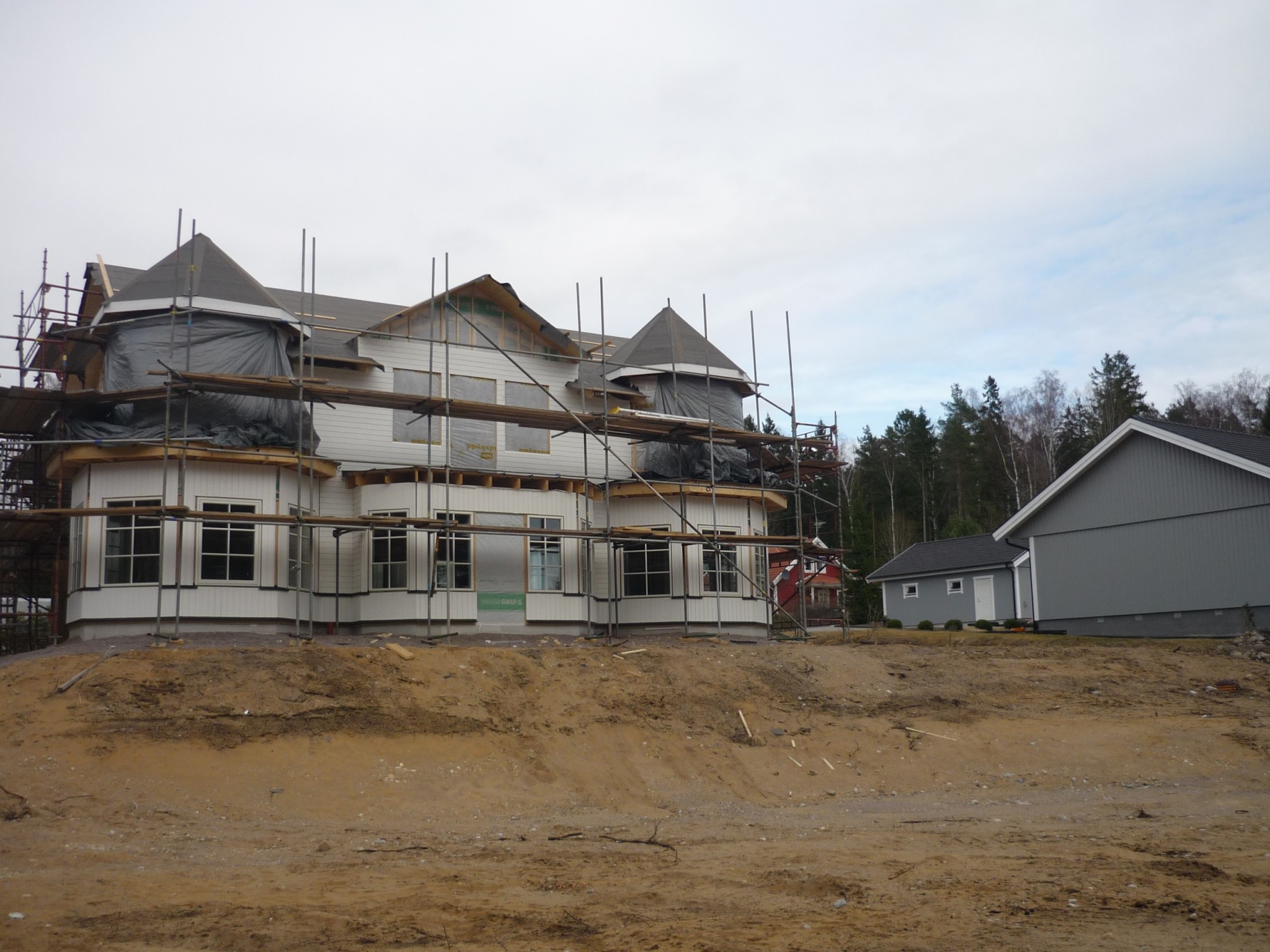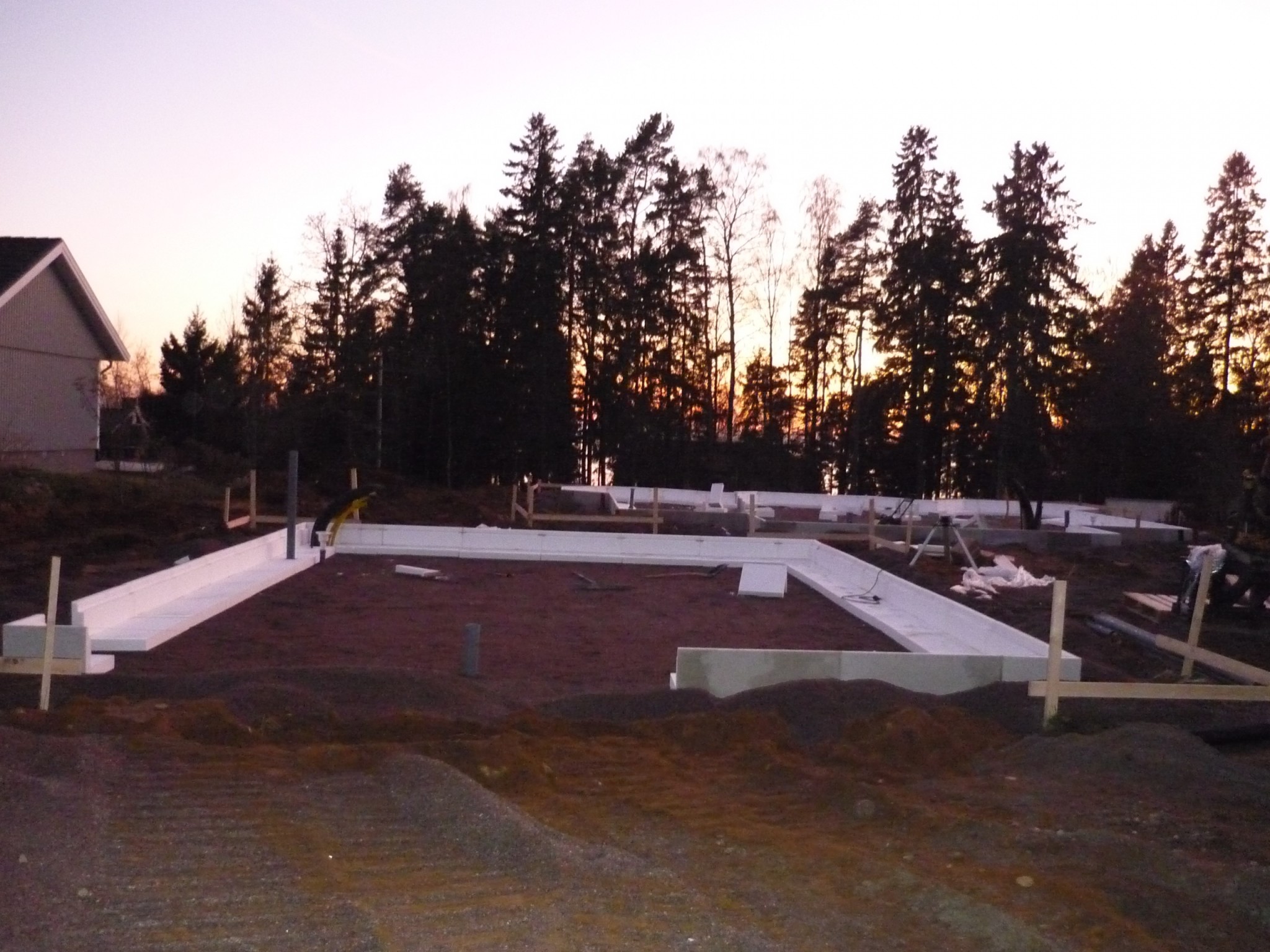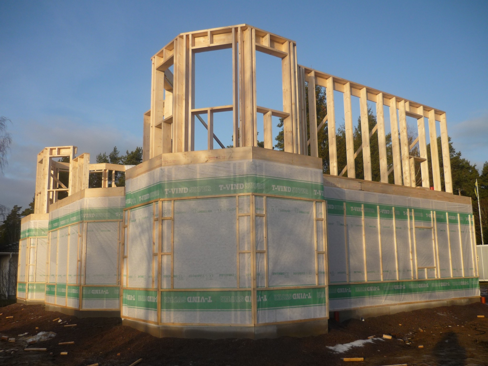 Grund och mark arbetena tog jag in en lokal firma till(väldigt nöjd).Grunden gjöts i oktober och jag kunde börja resa stommen i december.Stommen var för övrigt det absolut roligaste med hus bygget.