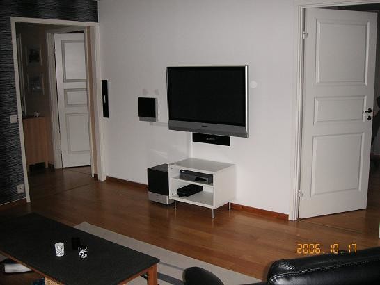 Har fällt in kabelkanaler till allt i denna. Det enda som har med plasman som syns på denna hylla är en snygg mediastation. Har även en kabelkanal upp till plasman på väggen.