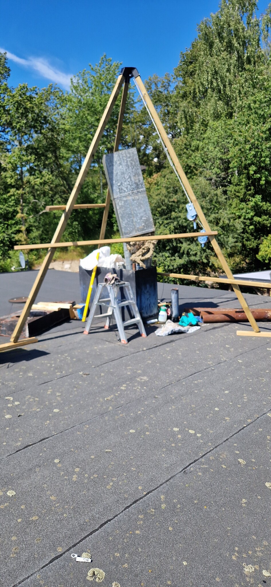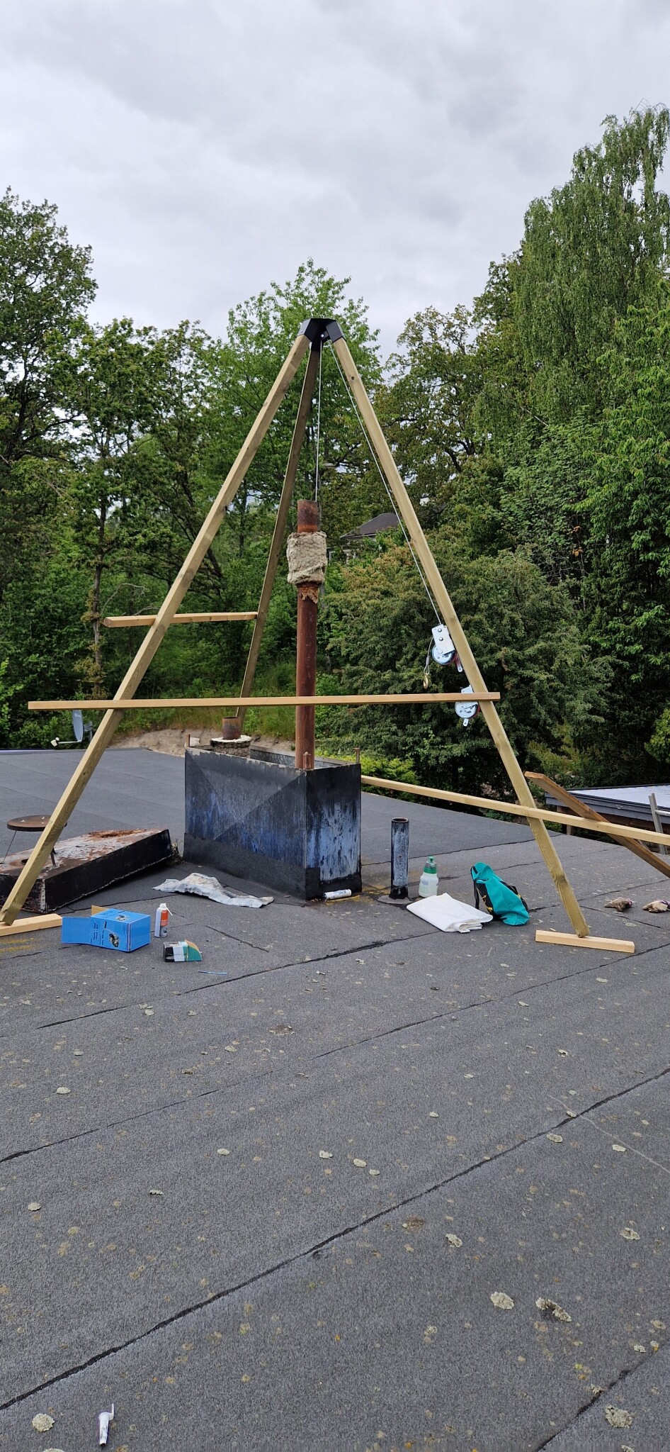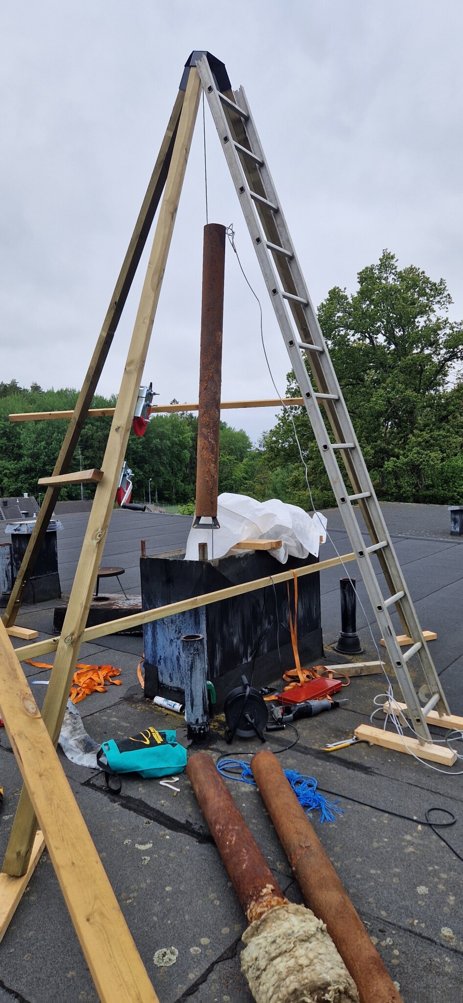 Nu till min fråga. Är det någon här som tagit bort en sån skorsten som kan ge tips och råd? Den är byggd i plåt/metal och har flera pipor.
