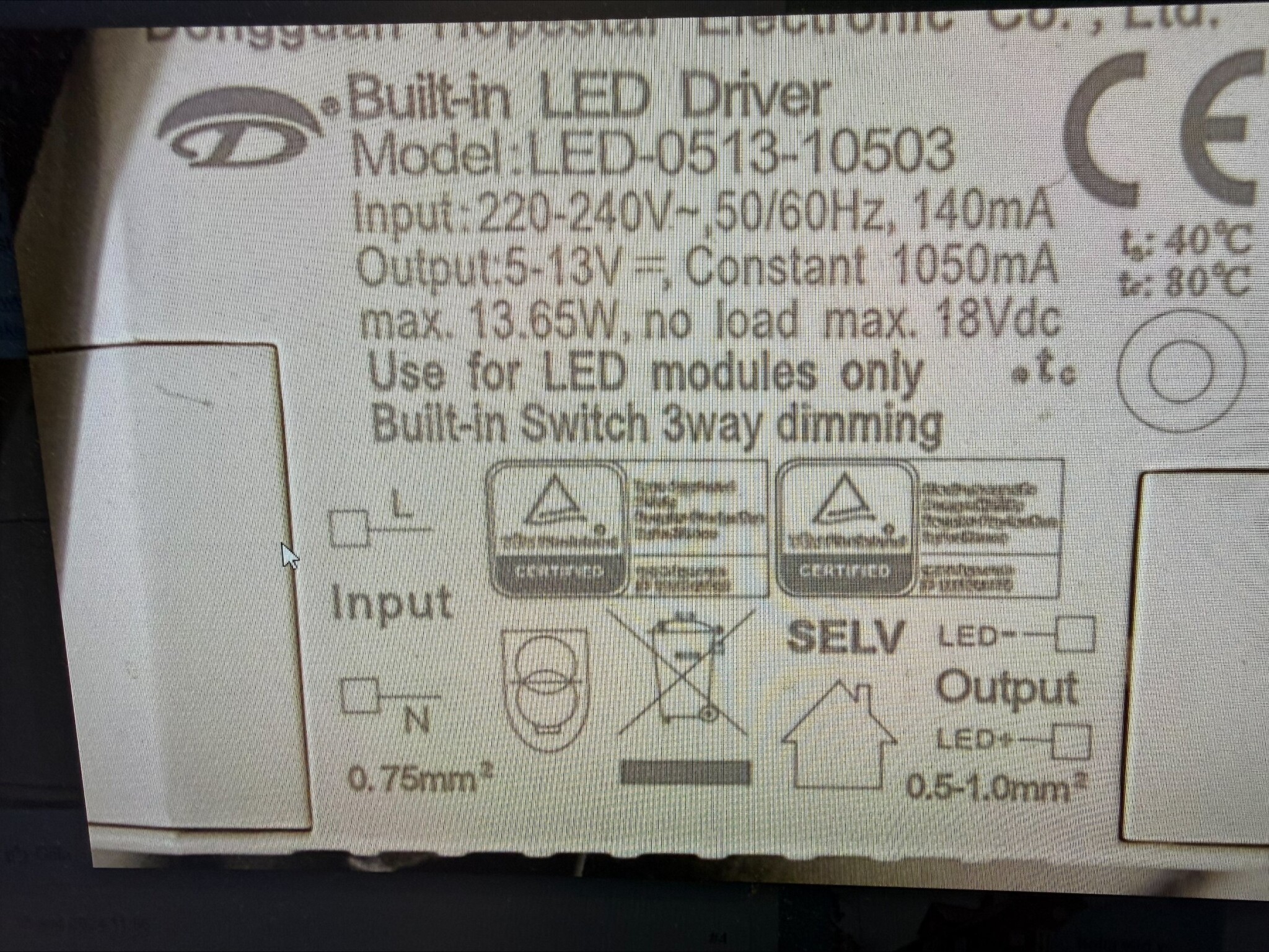 Drivdonet är konstantström, 1050 mA, 5-13V (no load max 18Vdc).