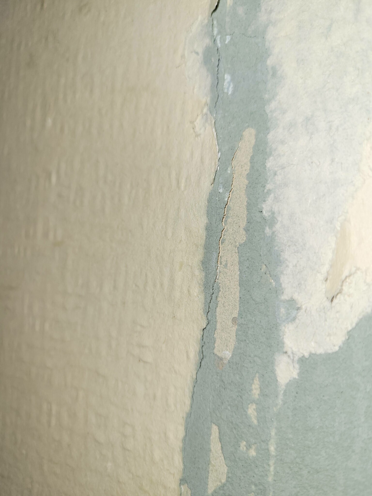 Jag har provrivit bort bitar på flera väggar i rummet och hittar det överallt men framförallt i tapetskarvarna.