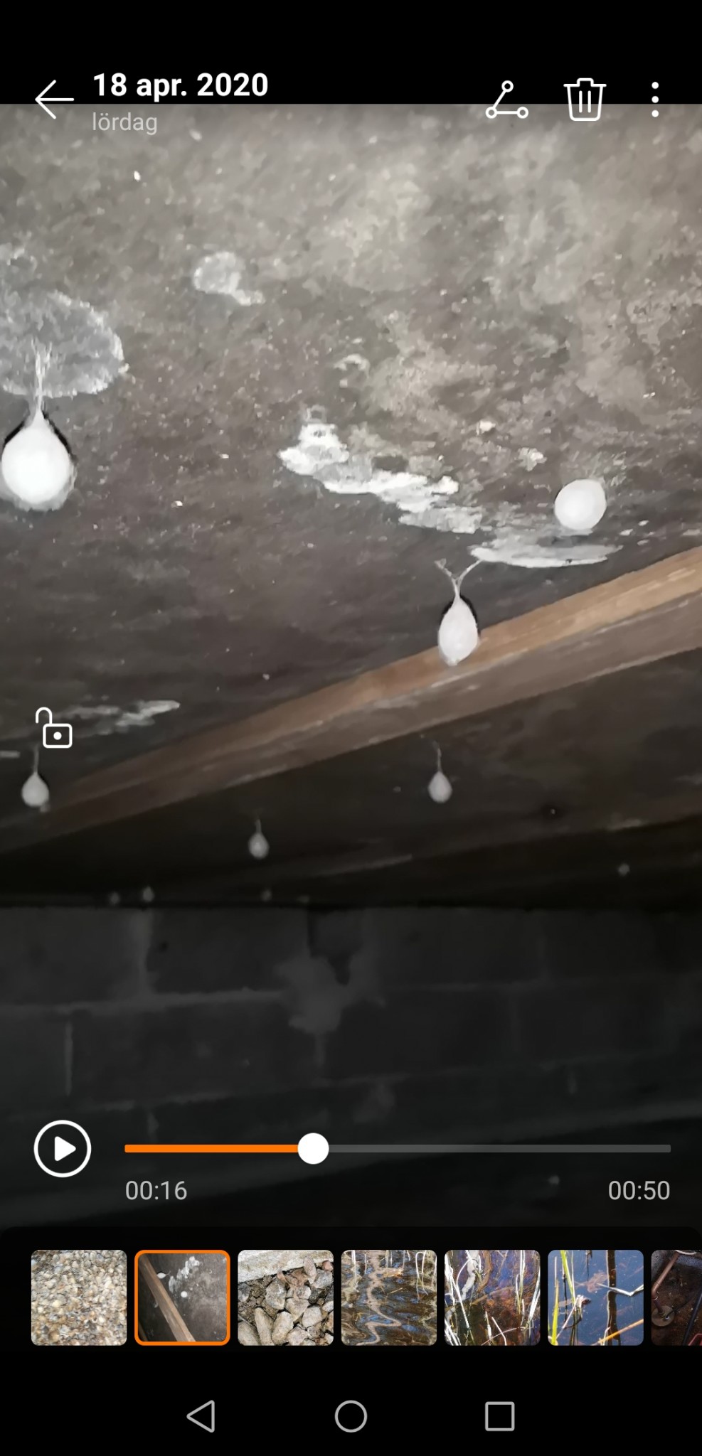 Har sommarstuga med en gammal del och en påbyggd del. Till den äldre delen går det inte att ta sig in i krypgrunden, och mot marken ligger en gammal pressening som går ner vid grundmuren. Den nya delen har sett fin ut innan, men nu har där kommit en påväxt, frånsett kokonger från källarspindel. Vi har viss doft i huset.