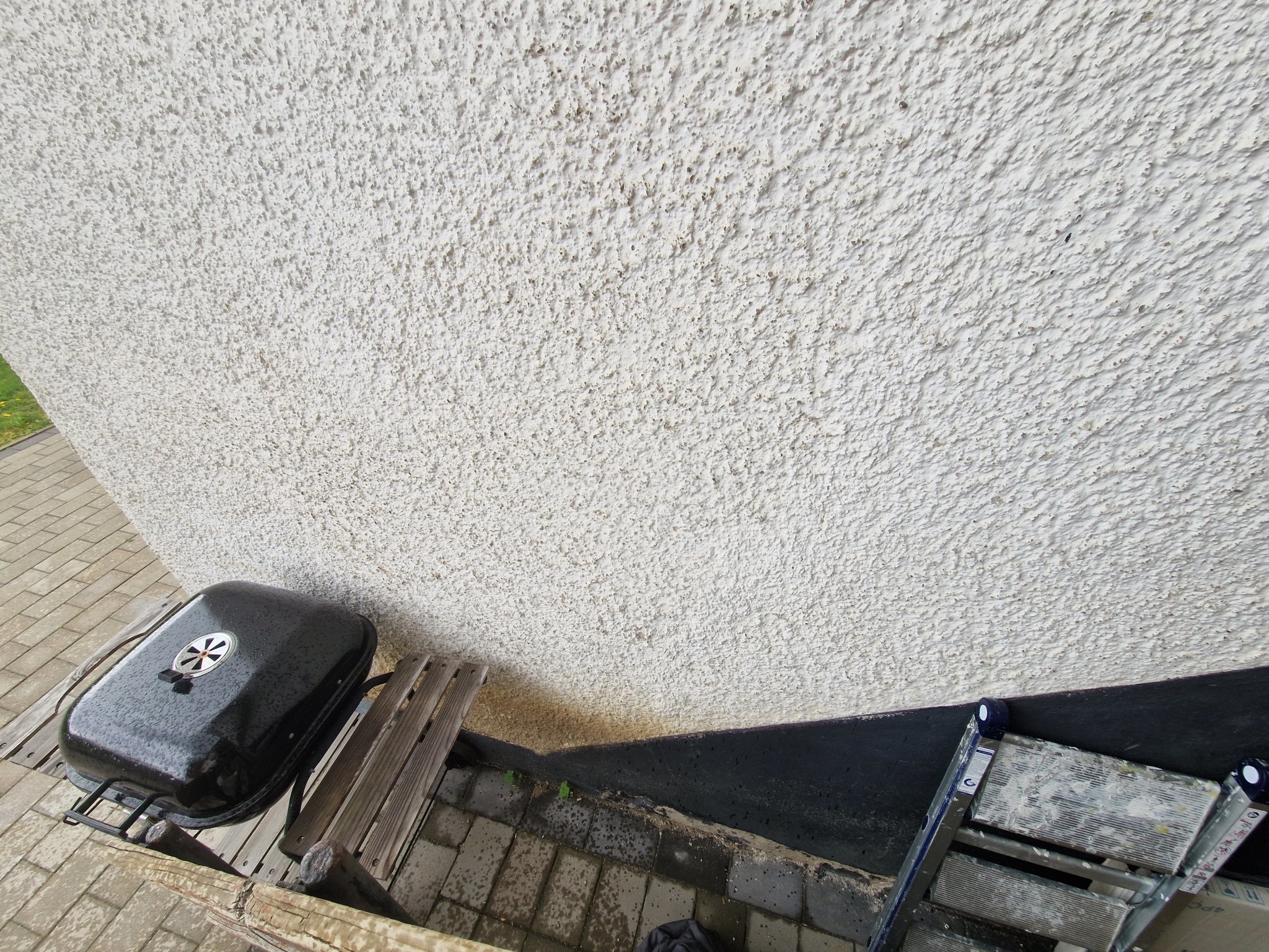 Väggen i fråga är en betongvägg och utsidan ligger över mark, alltså "öppet "mot trädgården, se bild.
