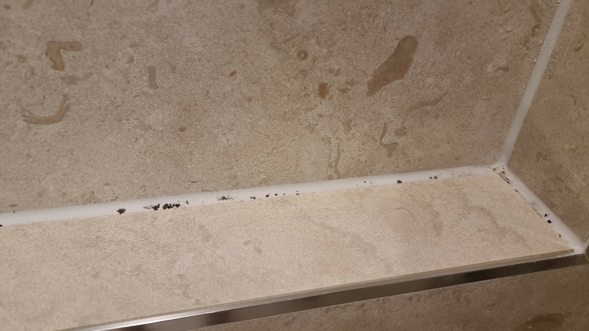 Vi hade en helrenovering av vår lägenhet ca. 2 år sedan. I badrummet byggdes en nisch där man lagt på våtrumssilikon.