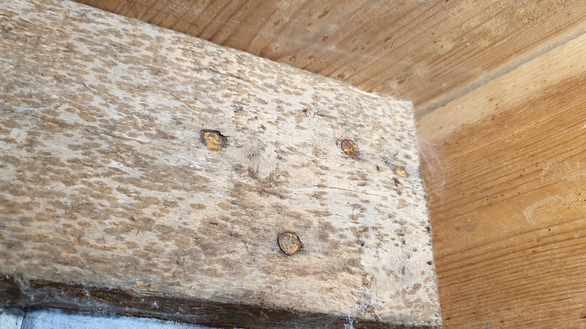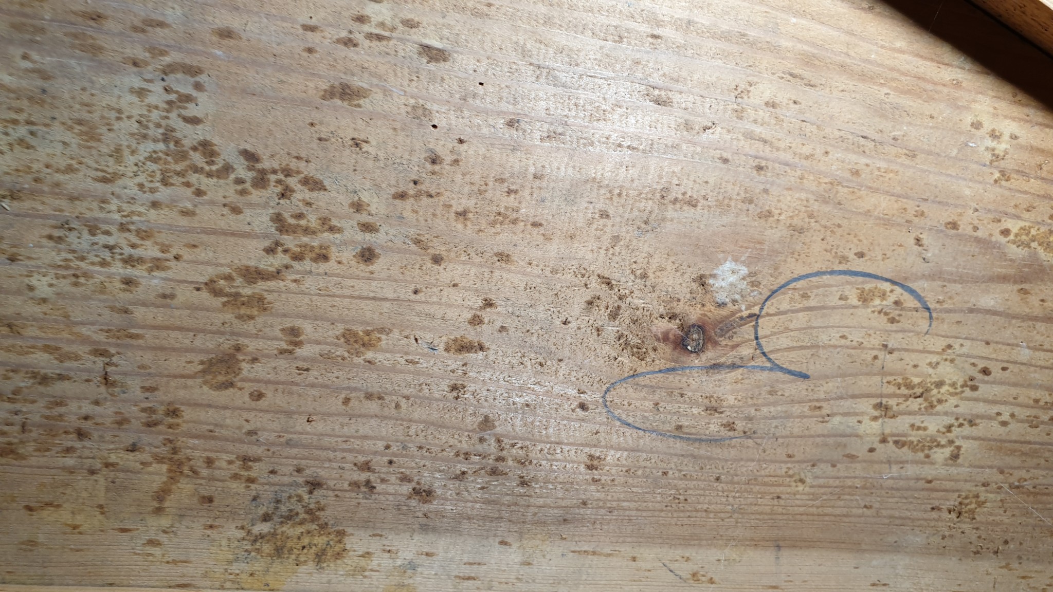 Vi upptäckte att vi har mörka prickar på undersidan av vår trappa och funderar på vad det kan vara. Prickarna är inte svarta utan ser mer ut som när man skvätter vatten på trä, dvs en mörkare nyans av träet.