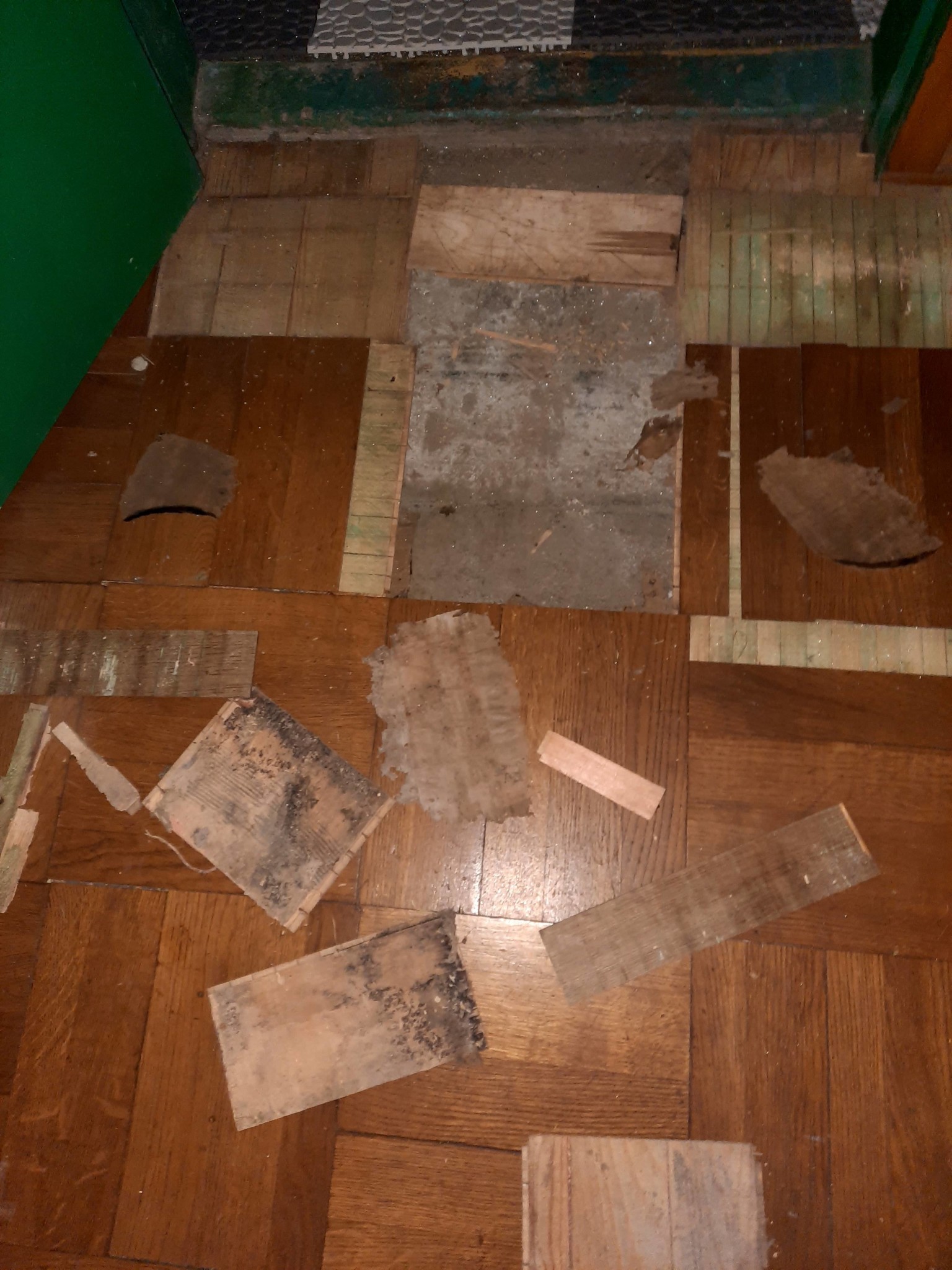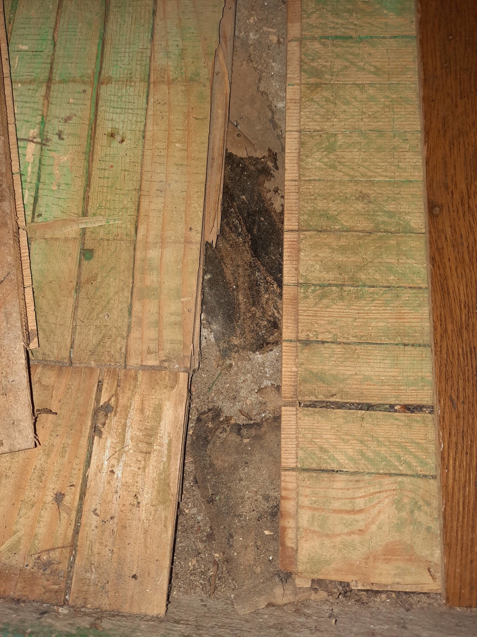 Bilder tagna i inredd källare, golvet har lossnat på flera ställen. Det är torrt så det är gamla skador. Kan detta ändå påverka inomhusklimatet? Tydligen kan mögelsporer påverka hälsan även om det är torrt.