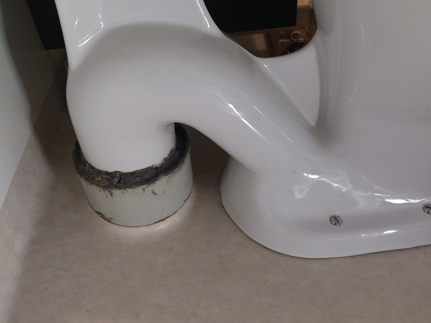 Troligen så har du ett 110 rör under golvet, det finns / fanns stosar för att passa stolar som kittades som nog var sådär 130 mm.