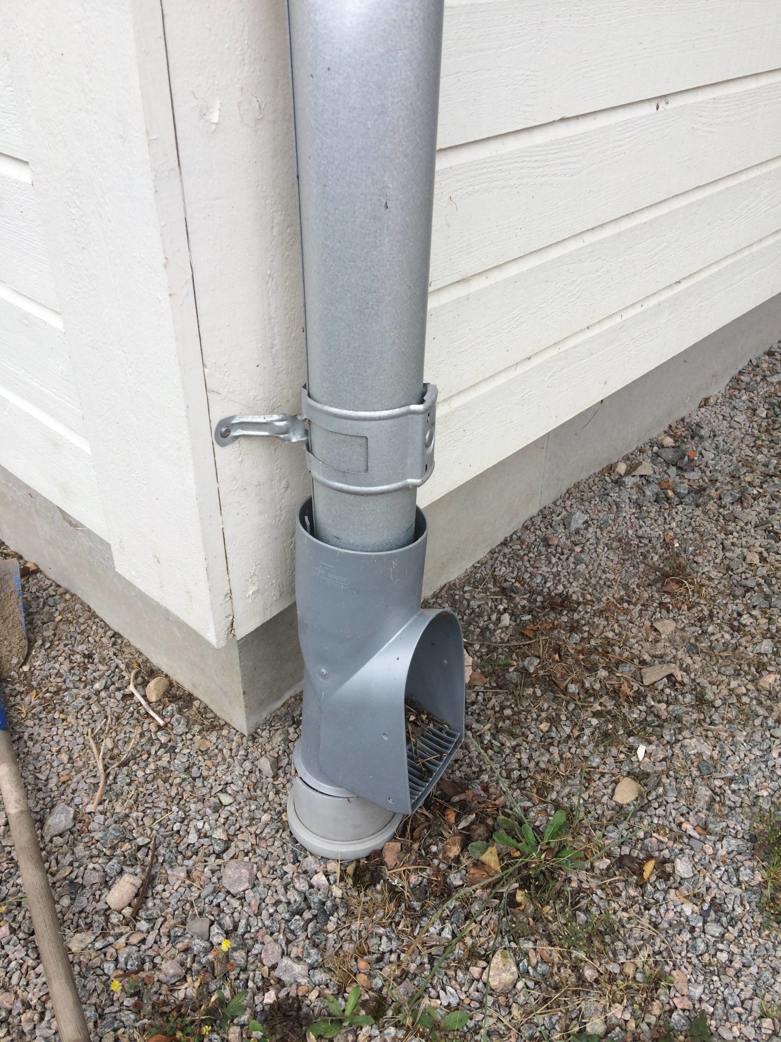 Har ett komplett Plannja-system gällande takvatten. Var och beställde ett komplett paket med "Lövis" som renstratt. Säljaren sa att allt fanns för att bygga systemet. Efter montage är resultatet följande: