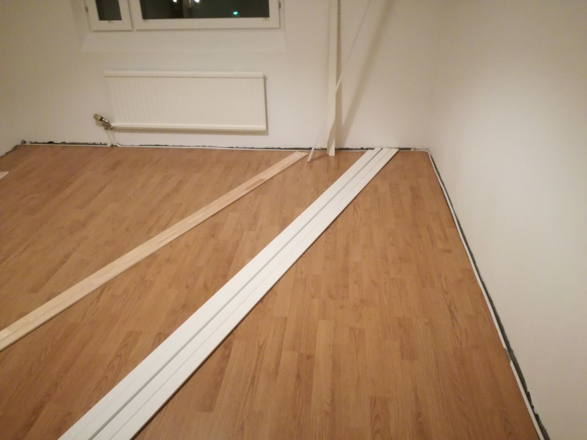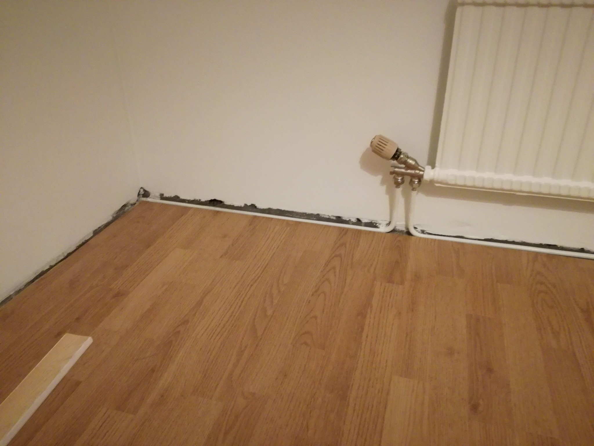 Allt är slutfört utomm själva golvlisterna, ena sidan utav själva rummet har en längre "värmekabel" som går till själva elementen (Bild 1 & Bild 2).