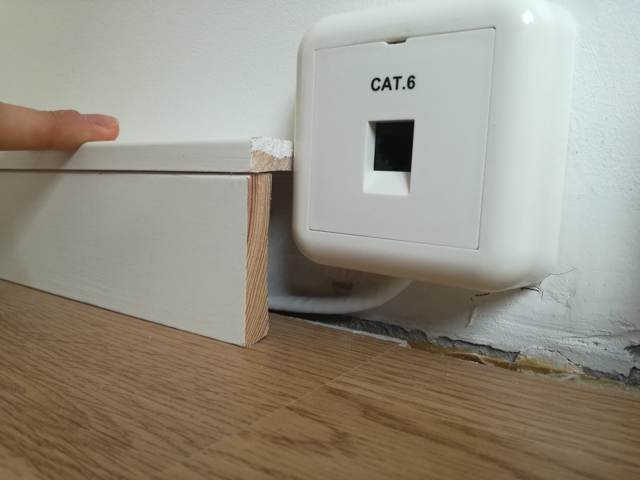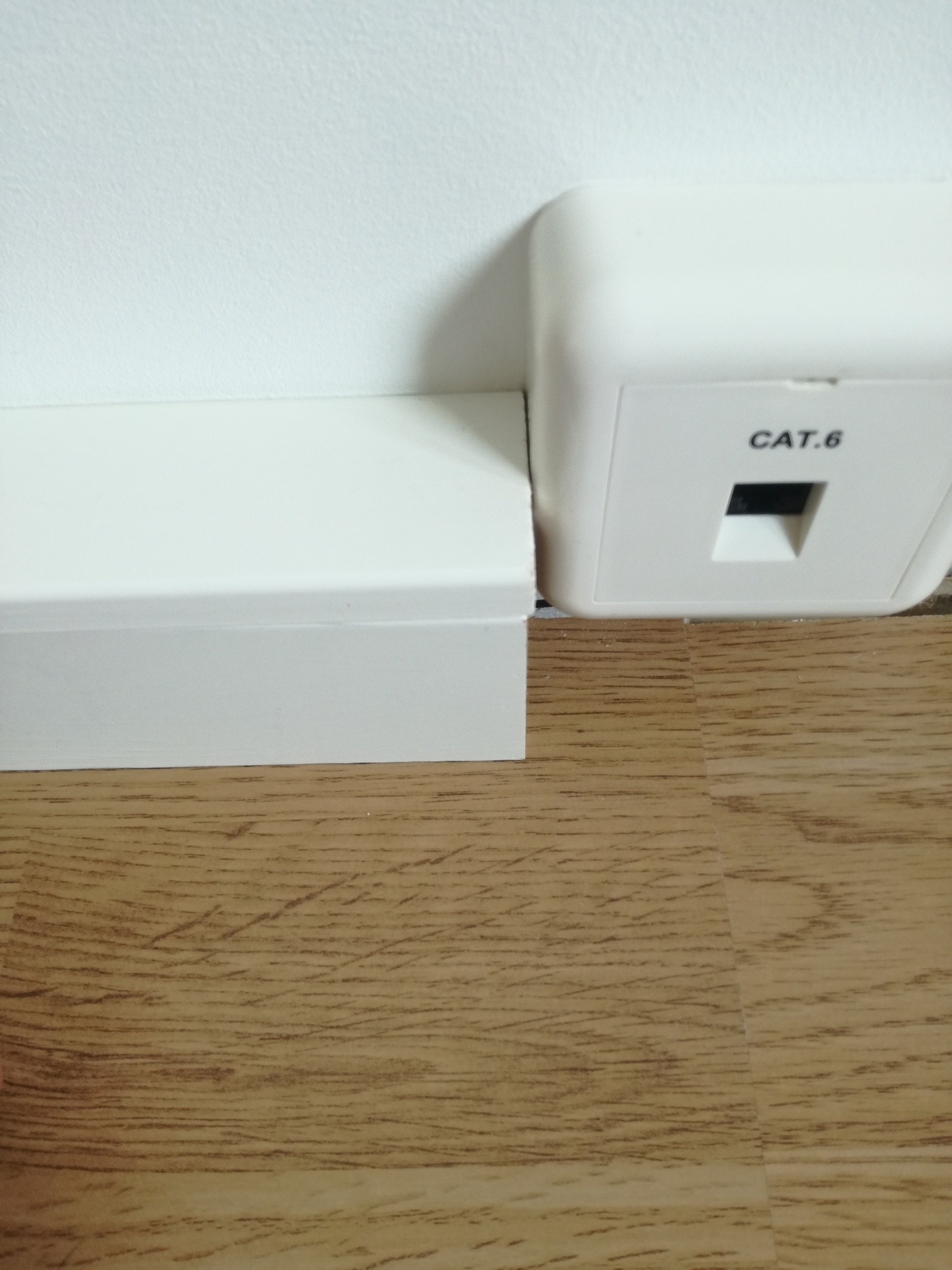 Nu ser man inte på bilden men internetuttaget är i precis höjd med strömuttaget så det var min fösta tanke även men då kommer det ovanför strömuttagen (blir inte samma höjd)...