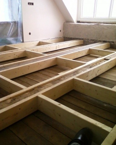 Plåt och slang i glesen och sedan klickgolv.