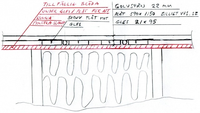 Montera golvvärmeplåtar utan kortlingar under glesen