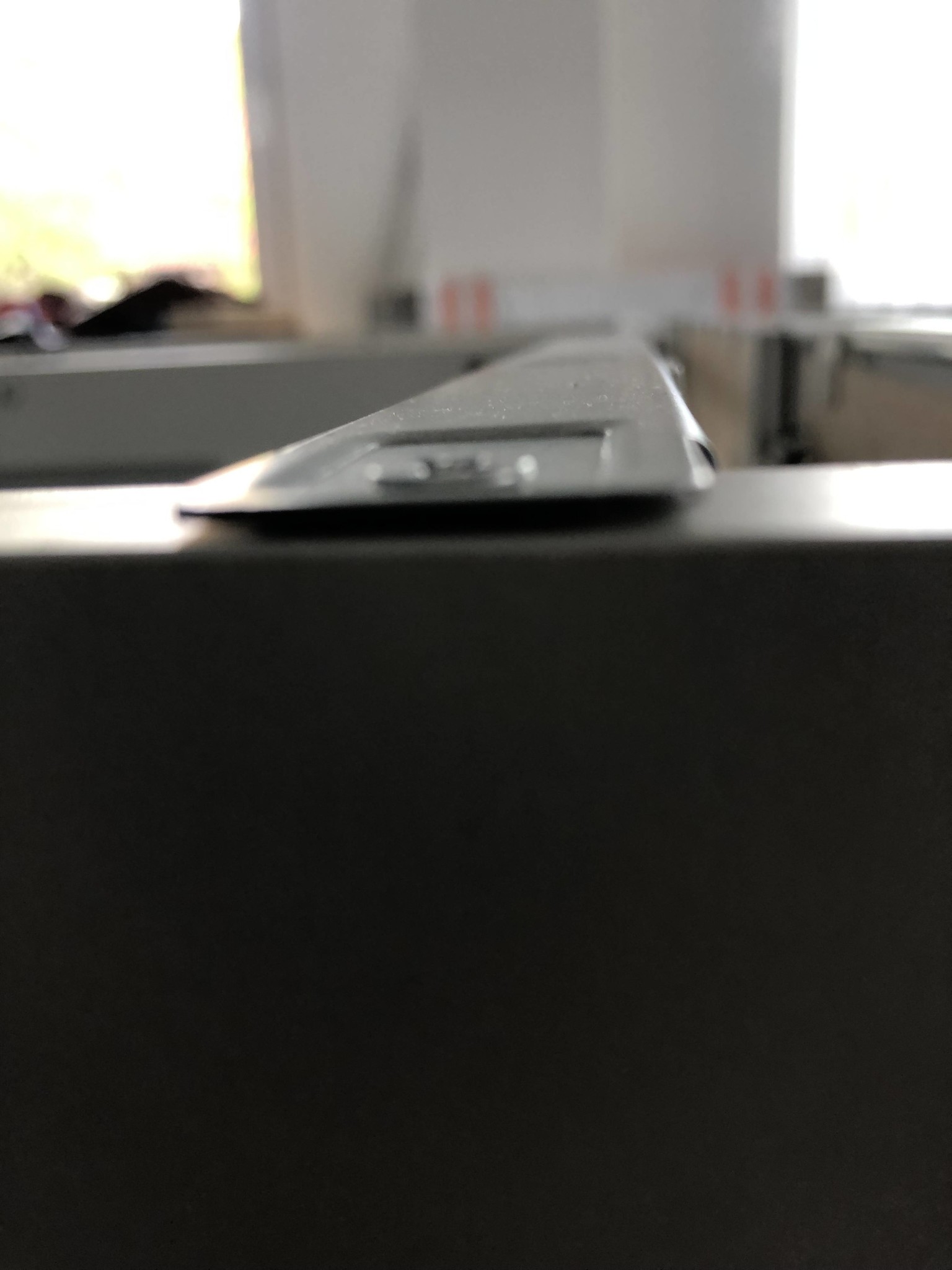 Bästa alternativet som jag ser det vore om jag fräste in, dvs filade ner med fil, skåpssidor 2-3 mm enbart där metallprofilerna ska sitta. På så sätt får man den totala höjden på köksön till 895 mm istället för nuvarande 897-898 mm samtidigt som dessa går i liv med stommen och bänkskivan så småningom hamnar på hela ytan, dvs skivan hamnar inte enbart på profilerna utan även själva stommen också.
