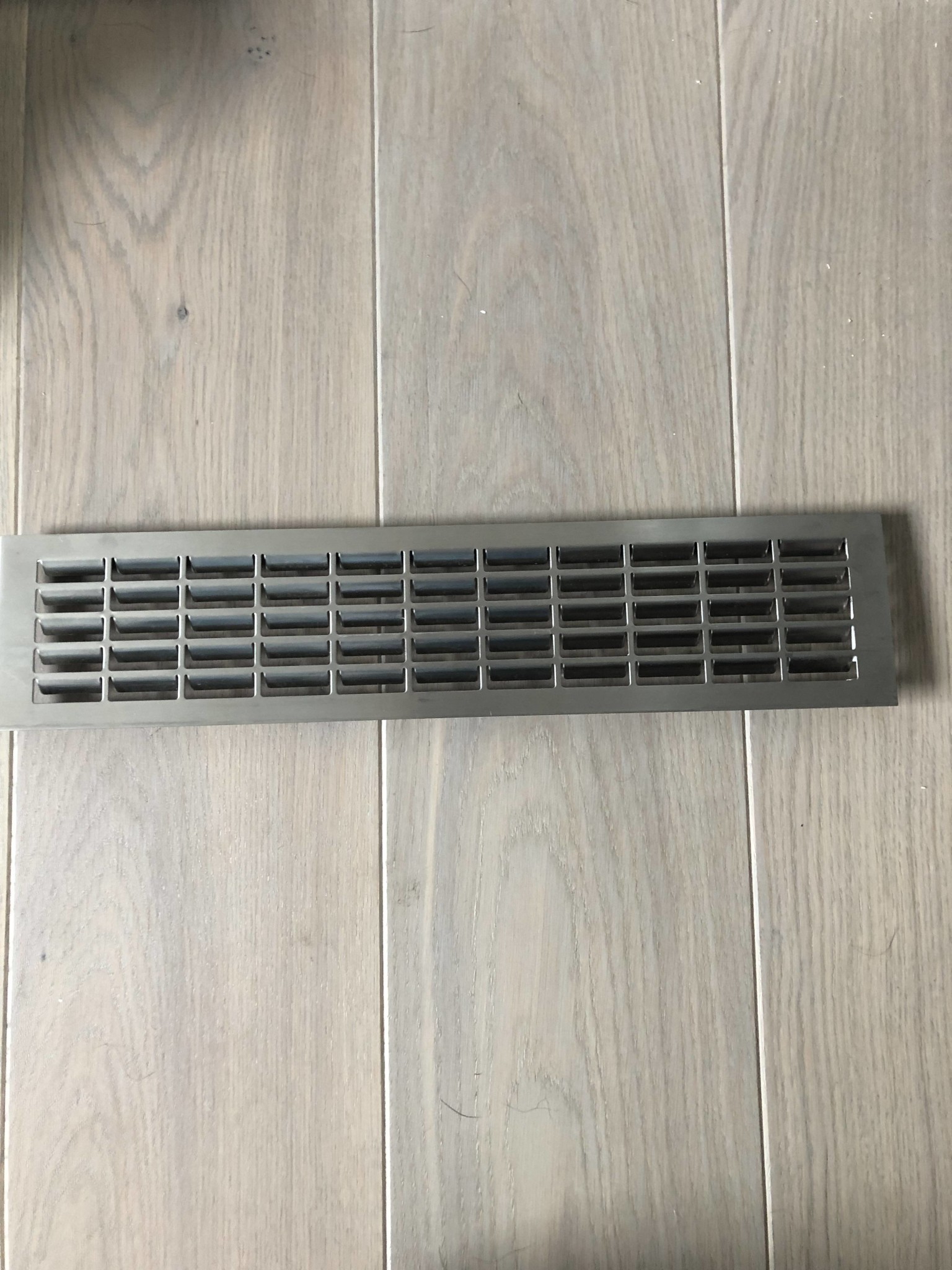 Ikea har ett snyggt ventilationsgaller som är 95 mm på höjden. Fläktkanalen kräver dessutom minst 100 mm, 95 funkar fint, har trippelkollat och provmonterat.