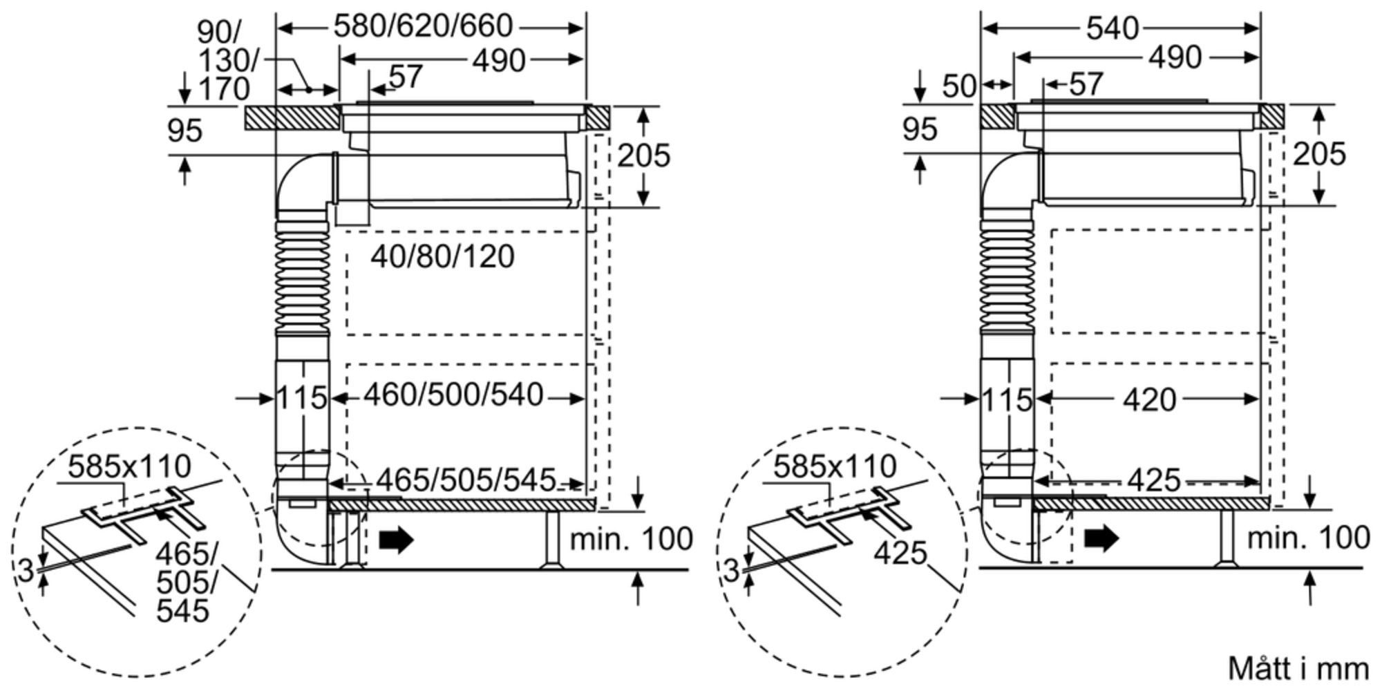 Skåpen är inte 600 resp. 400. I verkligheten är dessa 590 resp. 366. Totalt alltså 956. Därtill tillkommer 21 mm på varje sida avseende lådfronter Voxtorp. Således 998 mm. Det kommer även finnas mellanrum på 45-52 mm mellan skåpsrader. Detta pga hällen från Siemens EX877LX33E som kräver det. Det är en specialare där fläkten är inbyggd i själva hällplattan. Kolfilterfläkt så kanalen går bakom stommen och böjer sig under sockeln och blåser luften utåt mot fötterna när man står vid hällen.