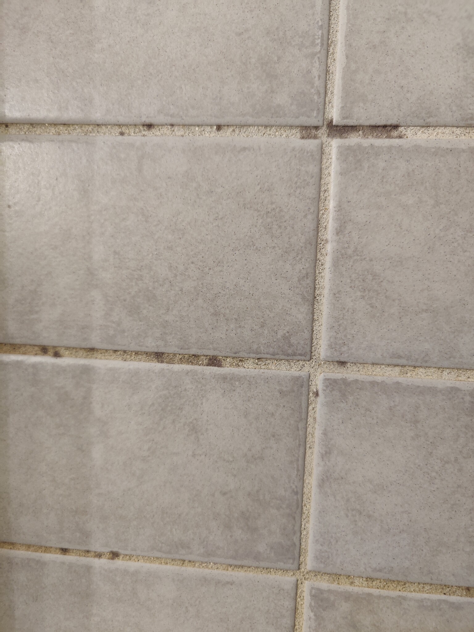 Schampo/baldam/ tvålrester så städning innan det börjar växa mögel. Vi använder denna som har tagit bort till och med mögelfläckar i fogen från tidigare ägare.