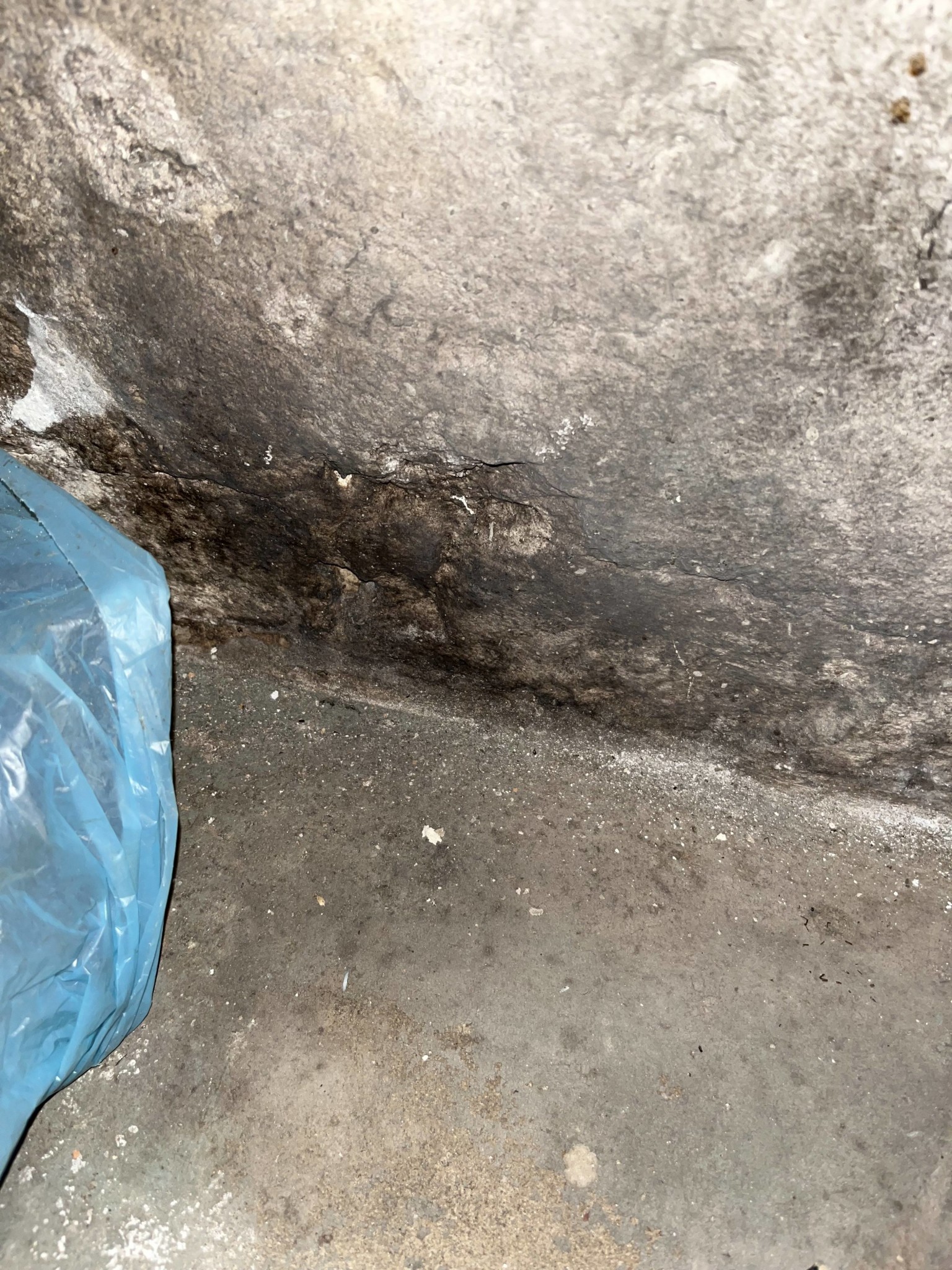 Har hittat dessa sprickor och mörka partier i källaren. Det är en yttervägg. Dränering gjordes för ca 10 år sedan och det är oklart om dessa sprickor och mörka partier är kvar från innan dräneringen eller om de kommit efter.