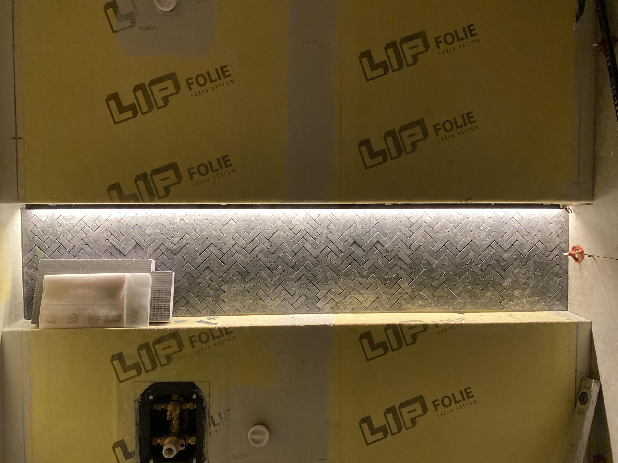 Lampan har suttit där under hela montaget så man kan ju tycka att man kunde haft den på när plattorna sattes..