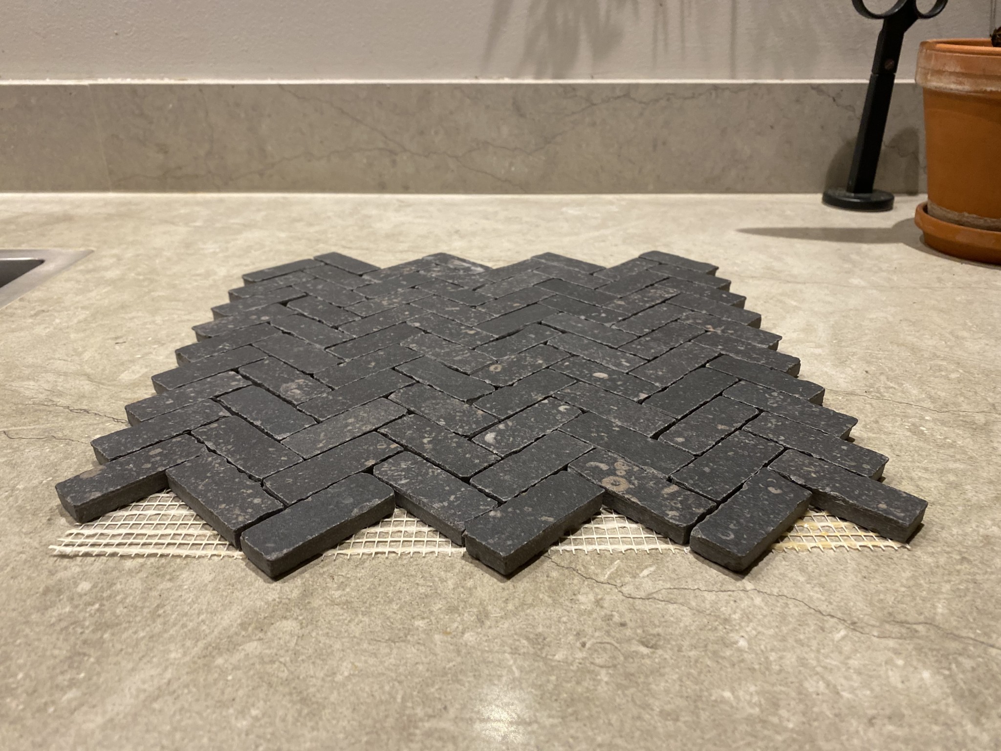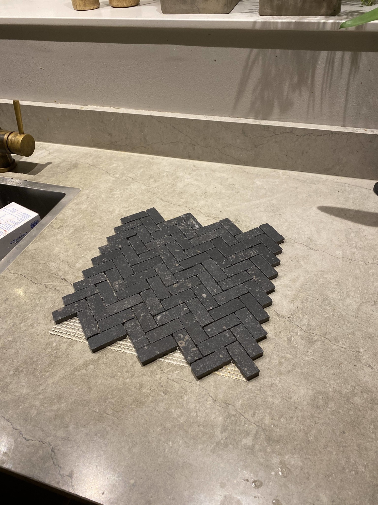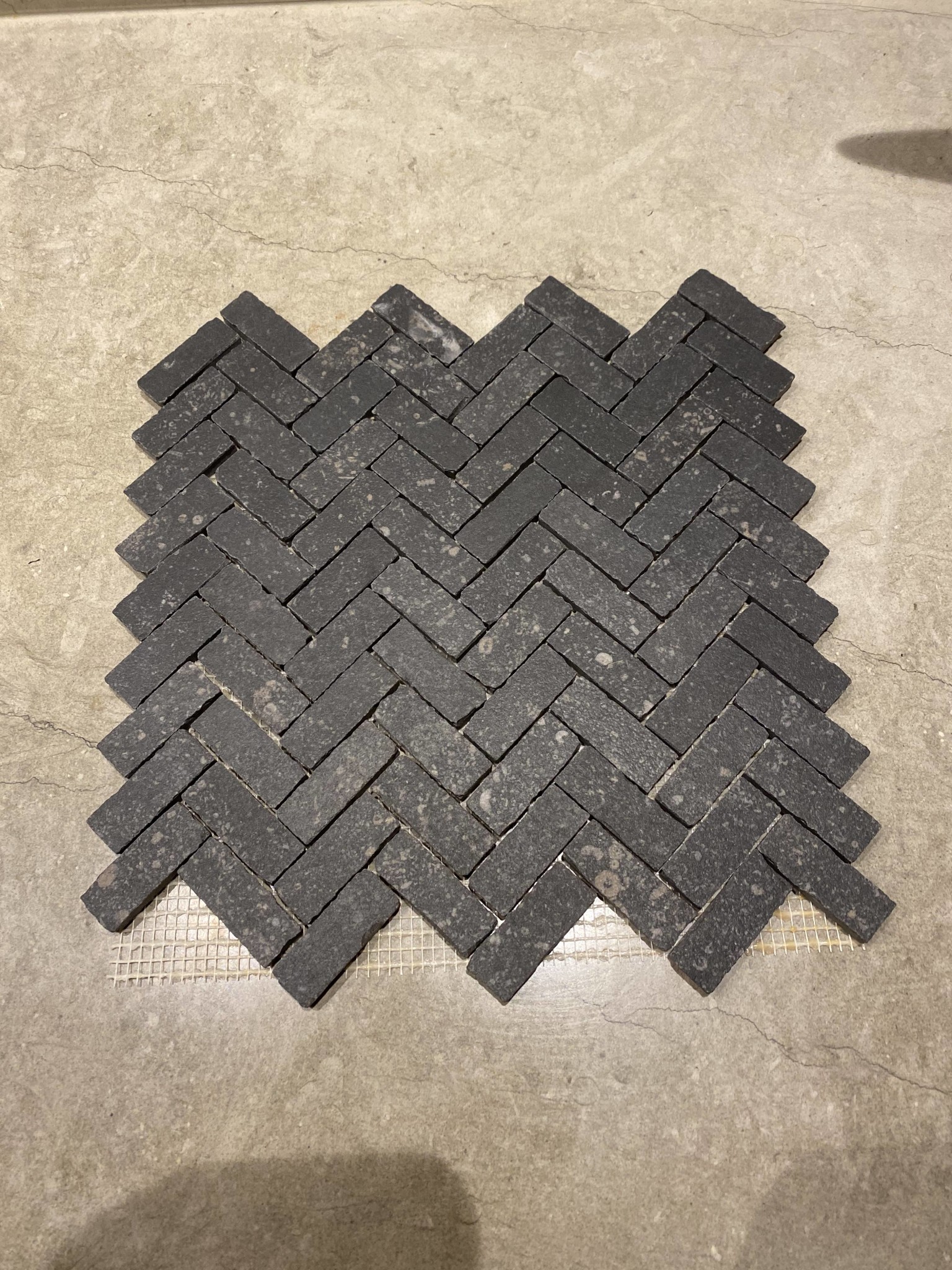 Vi har fått sagt till oss från kakelfirman att man inte får ha för höga förväntningar vid plattsättning med mosaik (speciellt med ljus från sidan) eftersom det kan vara knepigt att sätta och det kan jag ha förståelse för. Vi har valt en ojämn fiskbensmönstrad mosaik just för att vi inte har något emot lite liv i väggen, men detta kan väl inte vara ok? Man ser ju hela linjen där arken möts! Ingen fog än, så går det att rädda detta? Knacka bort enskilda bitar och sätta tillbaka?