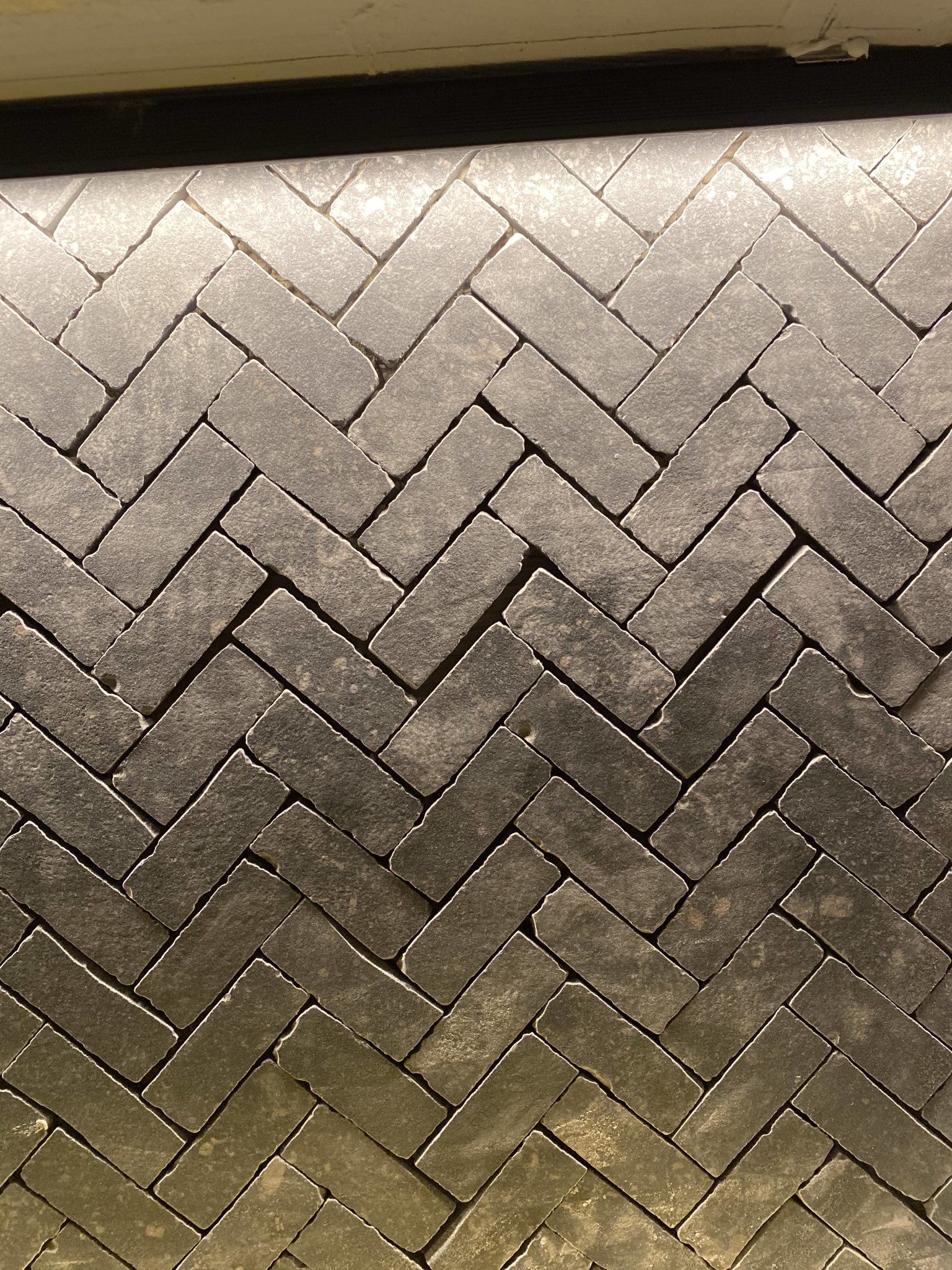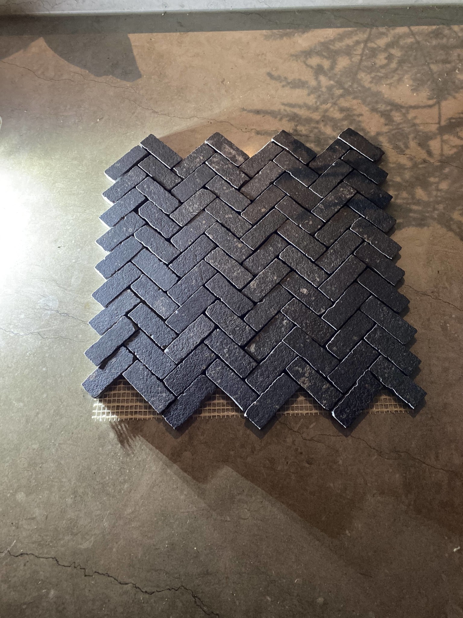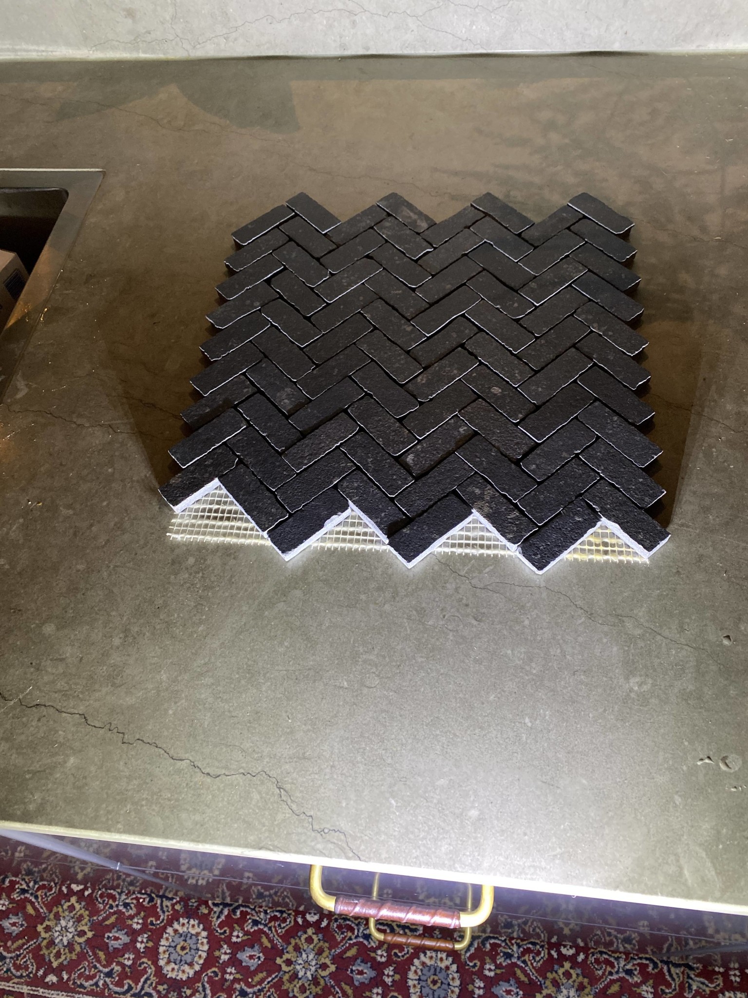 Vi har fått sagt till oss från kakelfirman att man inte får ha för höga förväntningar vid plattsättning med mosaik (speciellt med ljus från sidan) eftersom det kan vara knepigt att sätta och det kan jag ha förståelse för. Vi har valt en ojämn fiskbensmönstrad mosaik just för att vi inte har något emot lite liv i väggen, men detta kan väl inte vara ok? Man ser ju hela linjen där arken möts! Ingen fog än, så går det att rädda detta? Knacka bort enskilda bitar och sätta tillbaka?