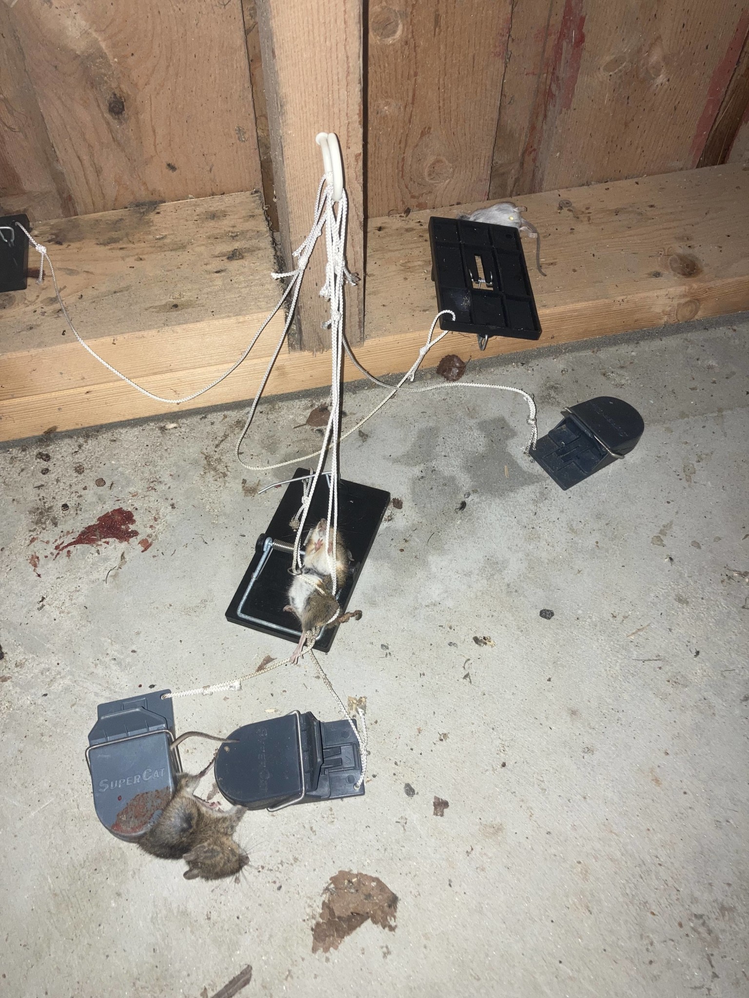 Såg en mus springa under dropplisten (jo jag vet snett och vint hus) så jag samlade ihop allt jag hade kvar gällande fällor!