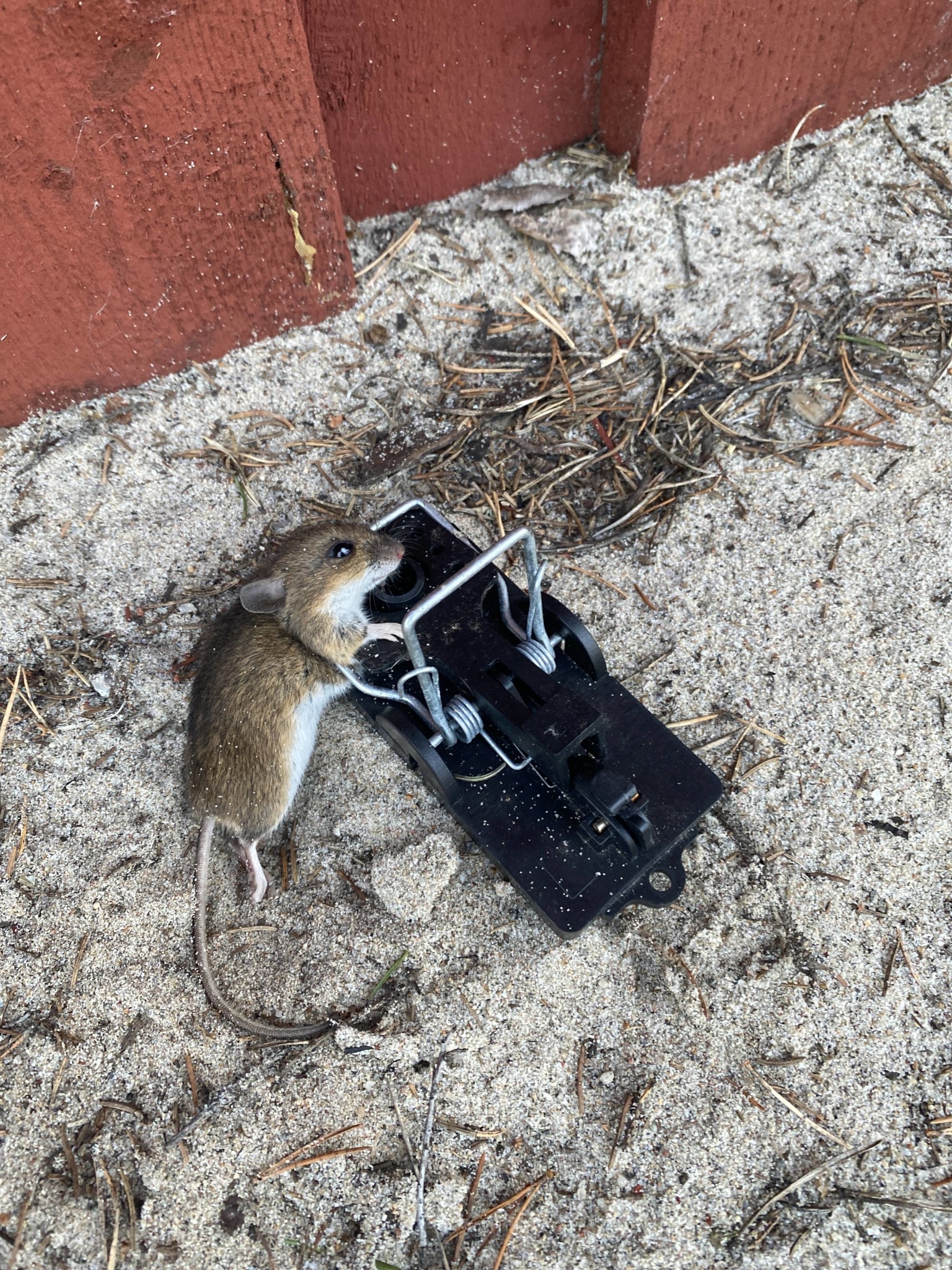 Jag är ju borta på jobb men sonen rapporterade först om 3 möss utanför verkstan så han tömmer och i med nya nötter, ställer tillbaka fällorna och går in i verkstan för att tvätta händerna (jo han har bacillskräck) så när han passerar ut igen är det en ny mus i en av fällorna, summa sumarum 4 möss.