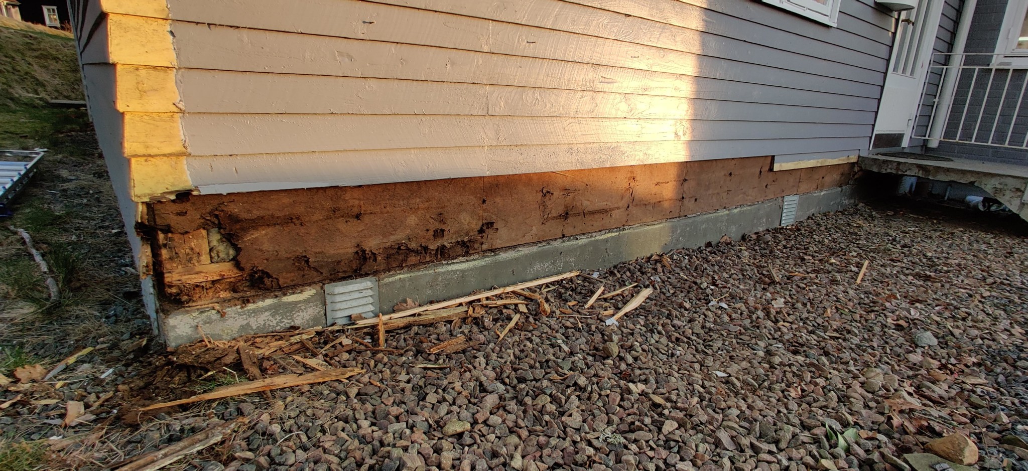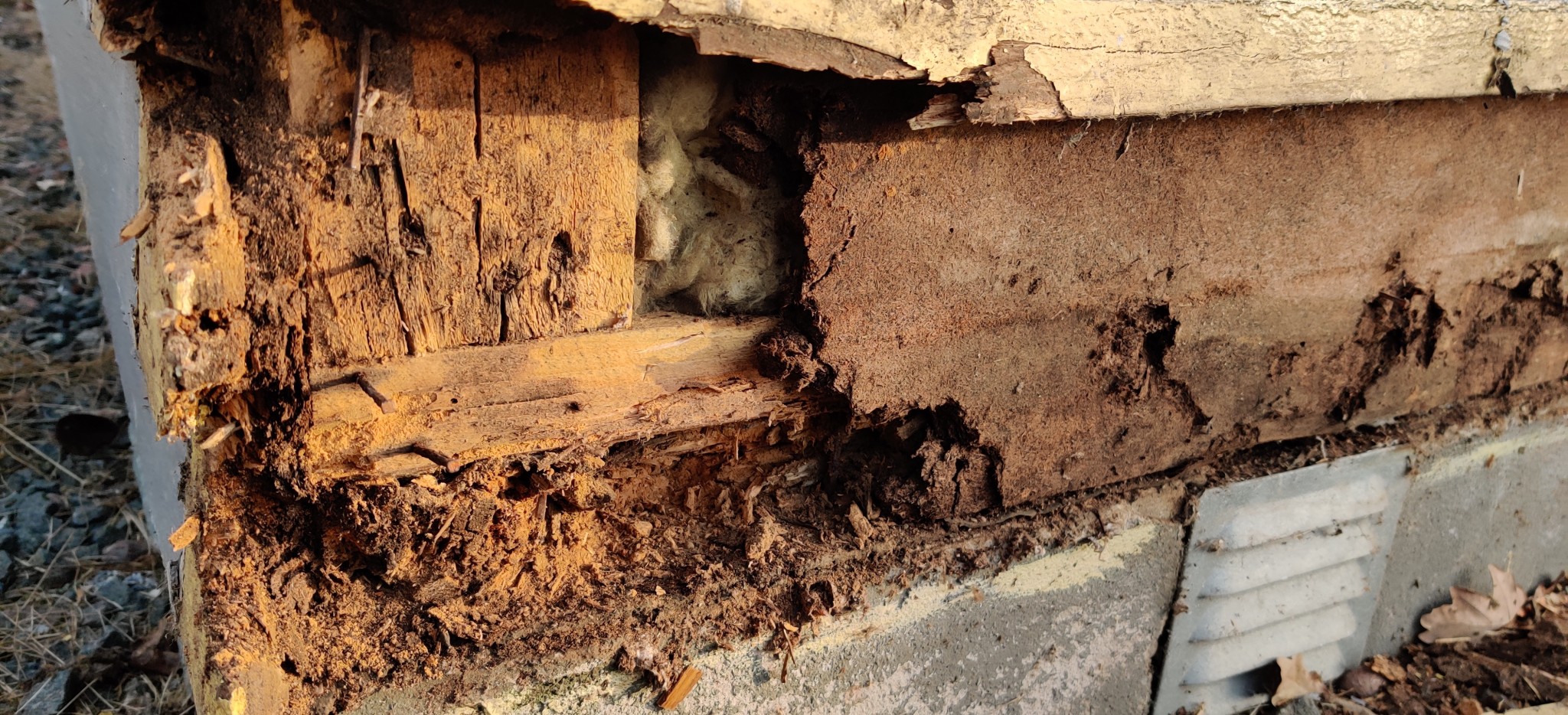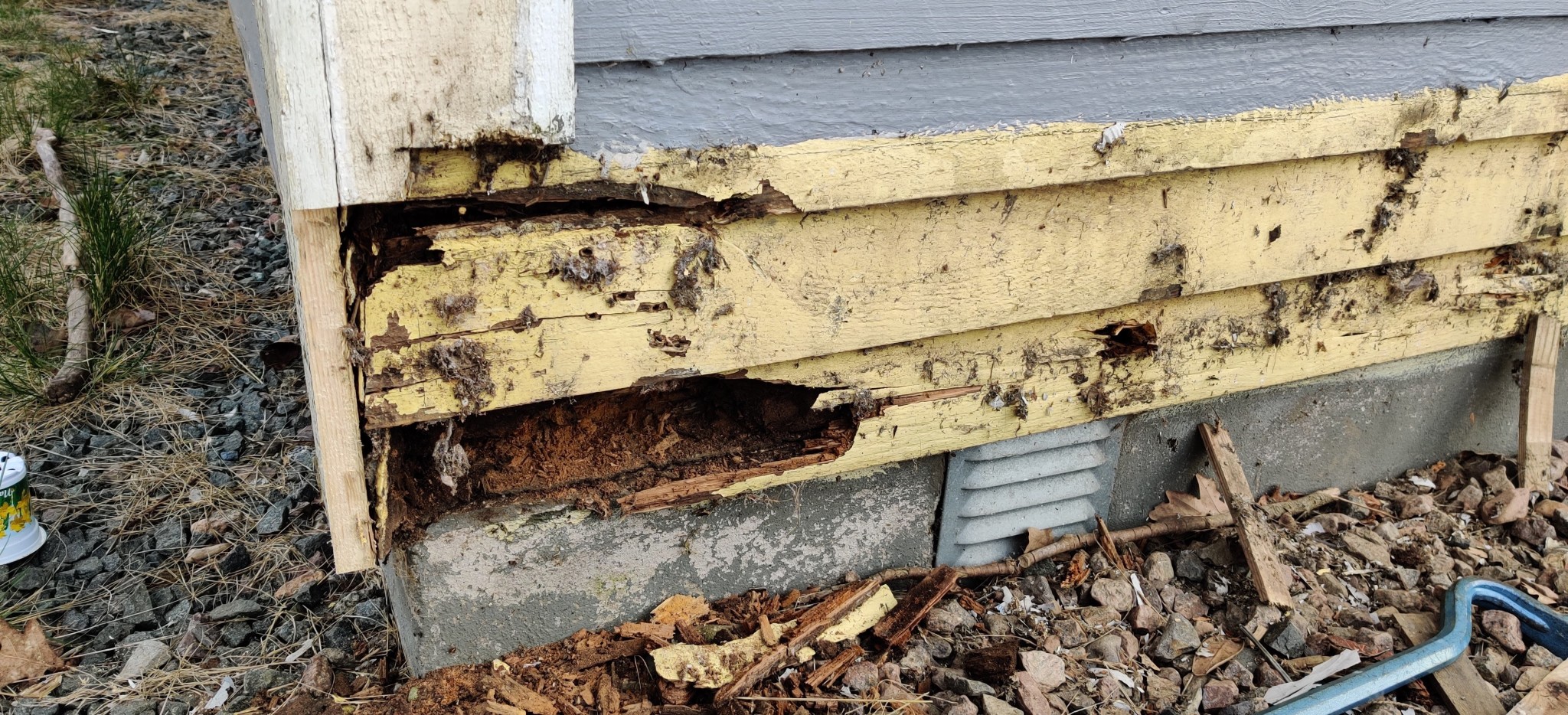 En regel var spikad i yttervägg och när denna togs bort märkte vi att det var murket längst ner på fasaden. Efter litet petande blev hålet större och större. Delar av syllen är också murken, hur hanterar man detta bäst?