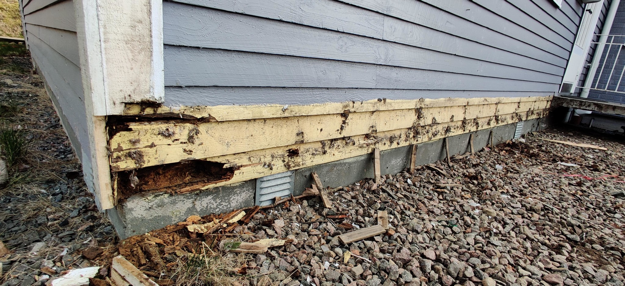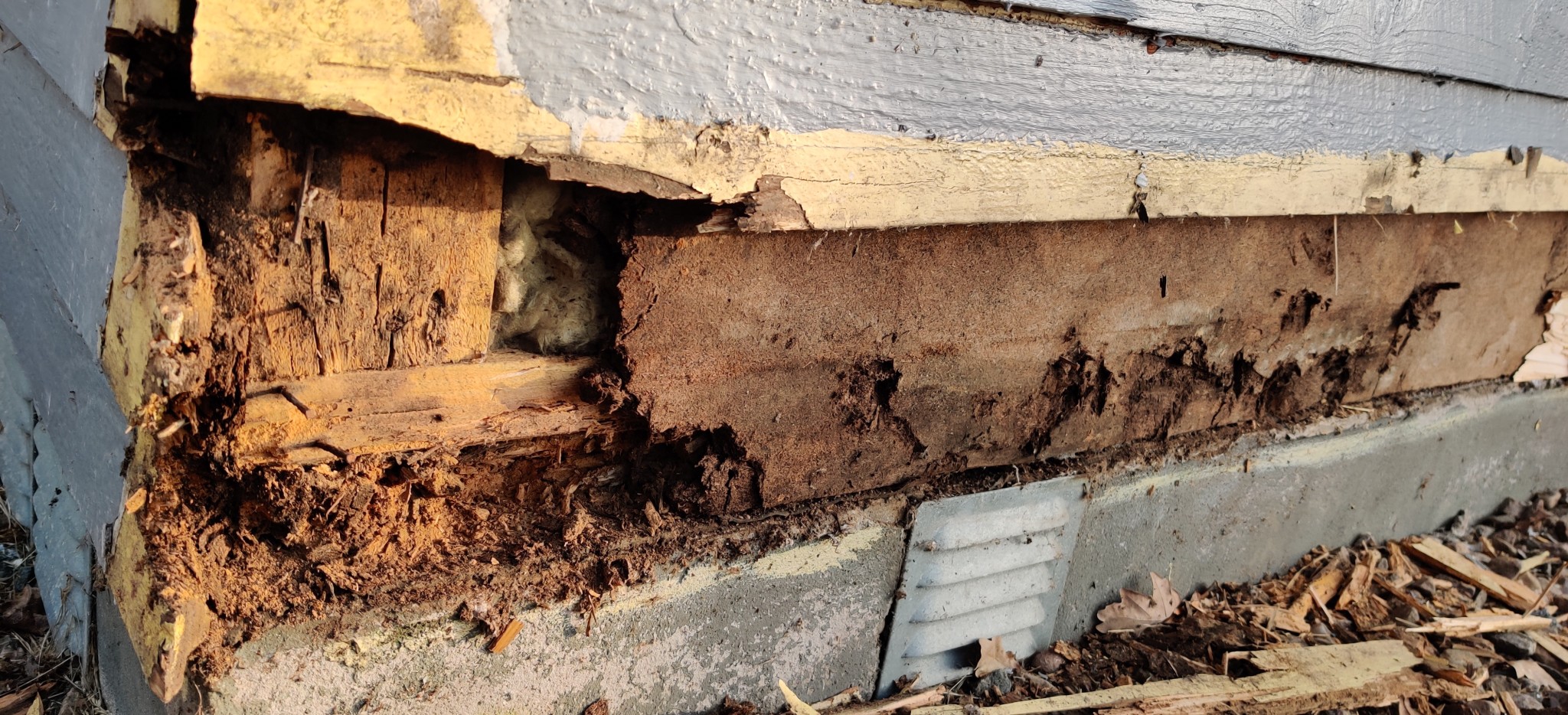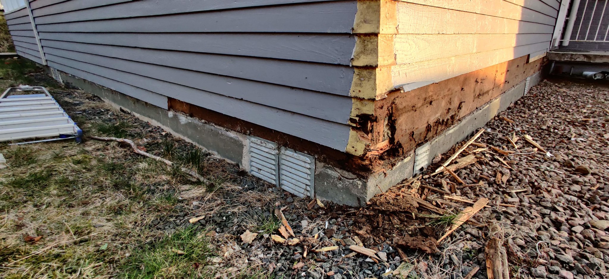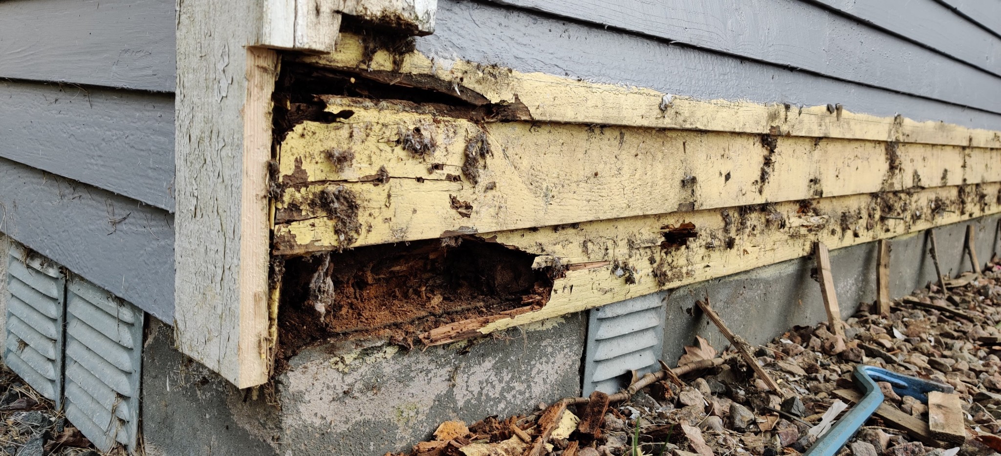 En regel var spikad i yttervägg och när denna togs bort märkte vi att det var murket längst ner på fasaden. Efter litet petande blev hålet större och större. Delar av syllen är också murken, hur hanterar man detta bäst?