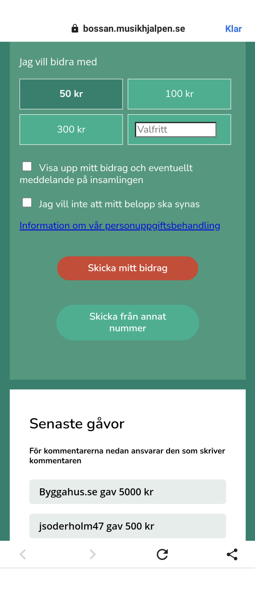 Mitt bidrag, i år som all år, är 500 kr.